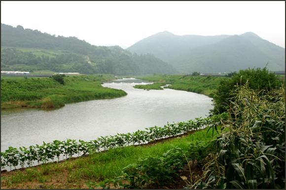 사람 손에 의해 강이 반듯해 지는 것이다.