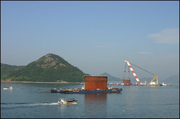횡간도와 연결하는 연육교 공사가 한창입니다.