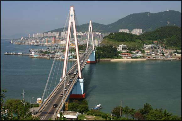 돌산도 도보여행의 출발지였던 돌산대교를 돌산공원에 올라 다시 만납니다.