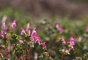 사이사이 개복숭아꽃이 한 폭의 그림을 만들었습니다.