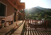 눌산은 매일 밤 펜션 손님들을 위해 숯불을 피운다,