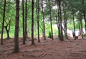 지정 된 데크와 허락된 곳에서만 야영과 취사가 가능하지만, '야영금지' 표지판이 무색한 송림.