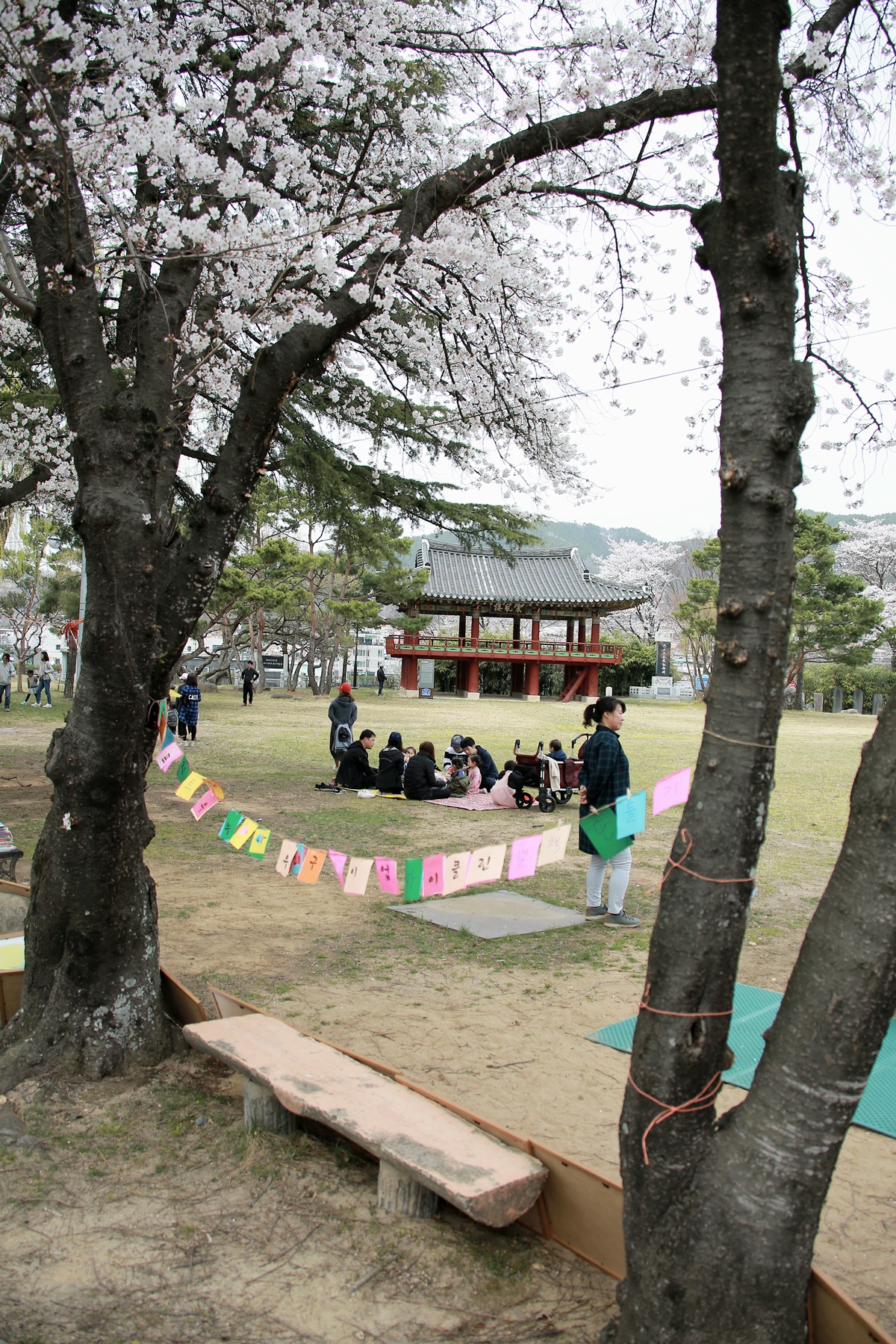 스물아홉 번째 무주 벼룩시장 마실이 4월 7일 일요일 한풍루 지남공원에서 열렸습니다. 2019년 첫 마실은 때맞춰 꽃을 활짝 피운 벚꽃 그늘 아래서 진행되었습니다.
