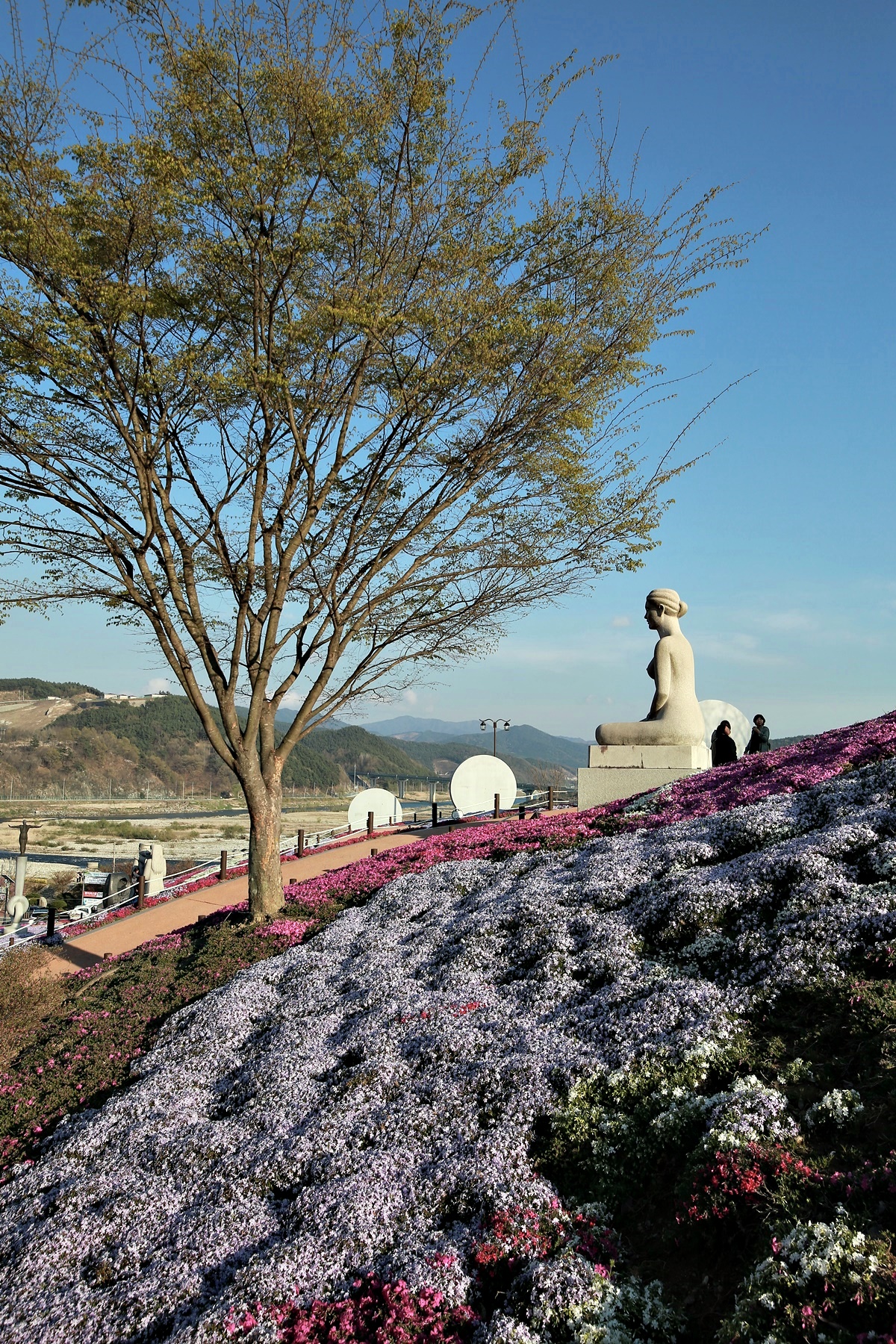 경남 산청군 생초면. 生草라는 독특한 지명에 끌려 찾게 된 곳이다. 이런저런 일로 수십 번 다녀갔다. 한자 그대로 풀면 '마르지 아니한 싱싱한 풀'이란 뜻이다. 더 깊은 의미가 있을지도 모르겠지만 찾아보지는 않았다. 예전에 그 넓었던 작약 밭은 보이지 않고 요즘은 4월에 꽃잔디와 5~6월에 꽃양귀비를 심어 사람들을 불러 모으고 있다.대전-통영 고속도로 생초IC를 나오면 생초조각공원에 있다. 지금 그곳에 꽃잔디가 만발했다.