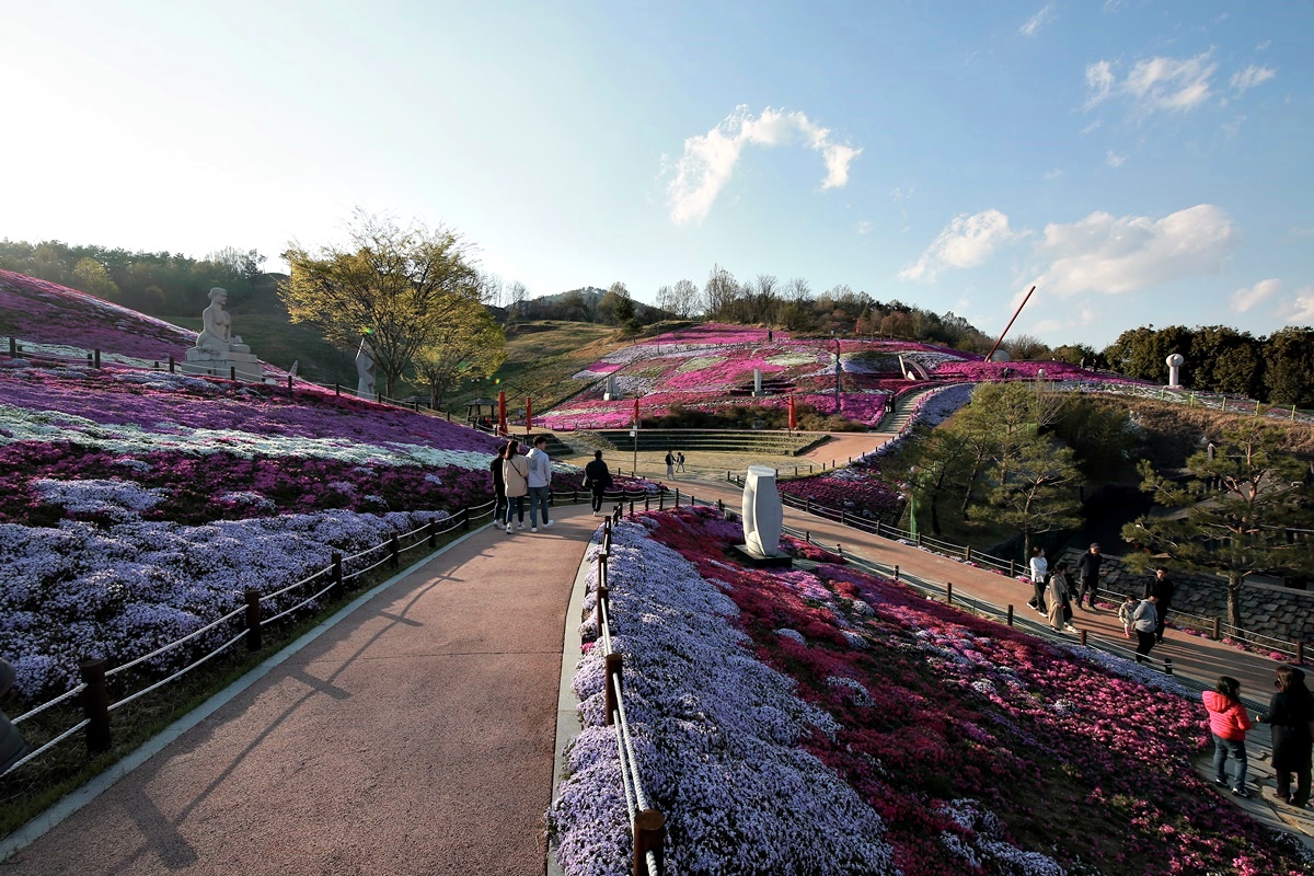 경남 산청군 생초면. 生草라는 독특한 지명에 끌려 찾게 된 곳이다. 이런저런 일로 수십 번 다녀갔다. 한자 그대로 풀면 '마르지 아니한 싱싱한 풀'이란 뜻이다. 더 깊은 의미가 있을지도 모르겠지만 찾아보지는 않았다. 예전에 그 넓었던 작약 밭은 보이지 않고 요즘은 4월에 꽃잔디와 5~6월에 꽃양귀비를 심어 사람들을 불러 모으고 있다.대전-통영 고속도로 생초IC를 나오면 생초조각공원에 있다. 지금 그곳에 꽃잔디가 만발했다.