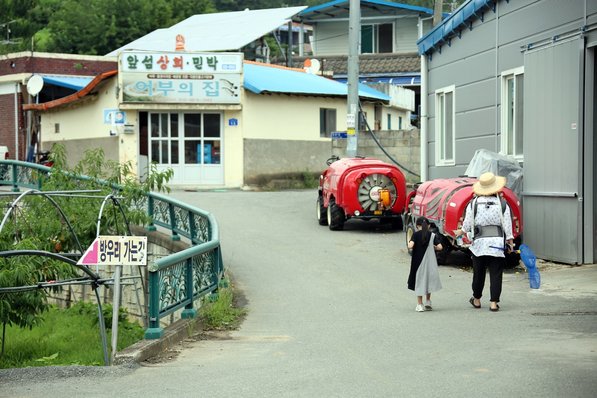 무주 앞섬마을은 우리나라 대표적인 복숭아 산지입니다. 금강이 흐르는 아름다운 풍경과 함께 사철 도시민들의 방문이 끊이지 않는 곳이죠. 곧이어 진행되는 무주 반딧불축제때는 야간 반딧불이 신비탐사가 바로 이 앞섬마을 일대에서 진행됩니다. 그만큼 청정지역이라는 얘깁니다.