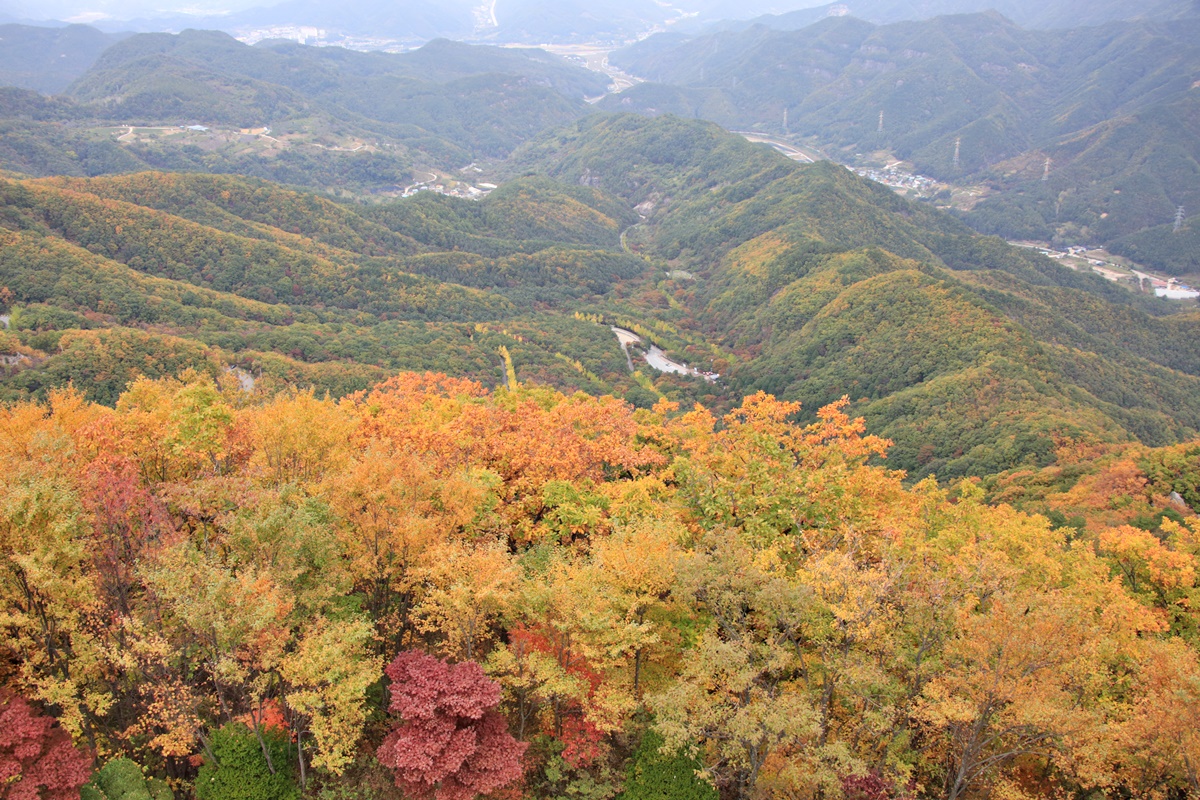 가을 단풍이 아름답기로 소문난, '대한민국 100대 명산' 중 하나인 무주 적상산은 지금 가을빛으로 가득합니다. 예년에 비해 조금 늦은 감은 있지만, 적당한 비와 바람과 차가운 공기, 그리고 큰 일교차 덕분에 단풍은 더 좋습니다. 적상산 정상은 이번 주말이 절정입니다.