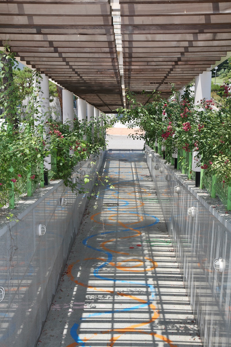 청소년수련관에서 눈 여겨볼 부분은 청소년수련관과 예체문화관을 연결하는 통로이다. 예체문화관쪽에서 청소년수련관을 가기위해서는 오르막길을 올라가야 하는데 이 통로를 이용하면 경사가 없이 청소년수련관의 지하 1층 옥외공연장으로 바로 들어갈 수 있다. 진입로 입구에서 바라보면 자동차가 다니는 오르막길과 지하 공간으로 연결되는 통로가 함께 보인다. 굳이 왜 이런 통로를 만들었을까. 그것은 아마도 걸어서 다니는 청소년들을 위한 배려가 아니었을까 한다.