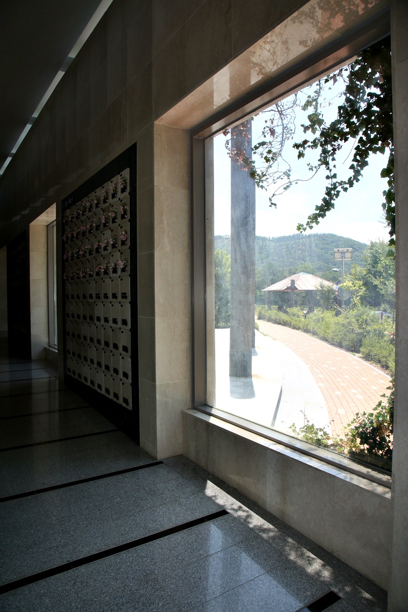 납골당(納骨堂)이란 물리적으로 시신을 화장한 후 남은 재를 담아 모셔두는 곳이다. 산 자에게는 죽은 자를 기억하는 장소다. 그런 의미에서 납골당은 다양한 공간 구성을 통해 산 자들과 교감한다. 현재 무주 추모의 집에는 개인단과 부부단으로 구성된 실내 봉안당 외에 잔디장, 화초장, 수목장으로 구성된 자연장지가 조성되어 있다.