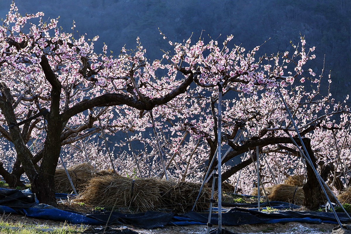 연분홍 복사꽃이 꽃을 활짝 피웠다.