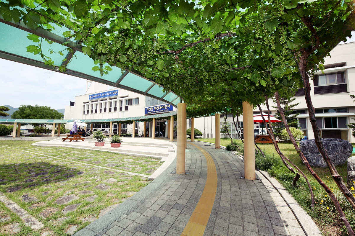 안성면은 해발 500m를 오르내리는 고원 분지 지형이다. 해발 1,614m 덕유산 향적봉을 등지고 동그란 원형의 땅에 나지막한 산봉우리들이 올록볼록 들어 앉아 있다. 산 위에서 내려다보는 풍경과 마을로 들어가 바라보는 느낌은 전혀 다르다. 그런 독특한 지형 위에 안성면 행정복지센터가 오롯하게 들어서 있다.