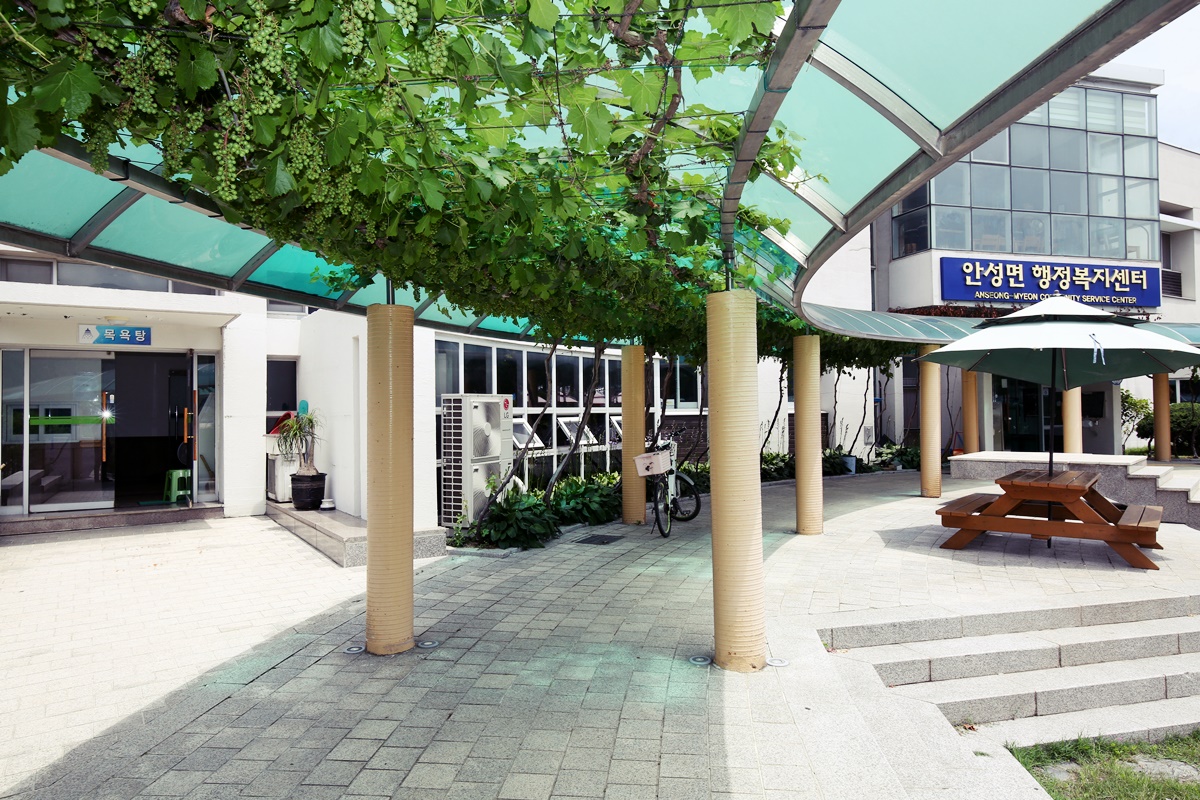 당시 안성면에는 일상 생활에 필요한 상업시설은 대부분 갖추고 있었지만 대중목욕탕은 없었다. “봉고차를 빌려서 대전으로 간답니다.”라는 주민들의 이야기를 들은 정기용 건축가는 안성면주민자치센터에 대중목욕탕 시설을 함께 지었다. 하지만 유지비 걱정을 하지 않을 수 없었다. 그래서 생각해낸 것이 남녀를 구분하는 목욕탕 시설을 아닌 하나의 공간만 만들어 홀숫날은 남탕, 짝숫날은 여탕이라는 기발한 아이디어를 동원해 저비용 고효율 공간을 창조해 냈다.