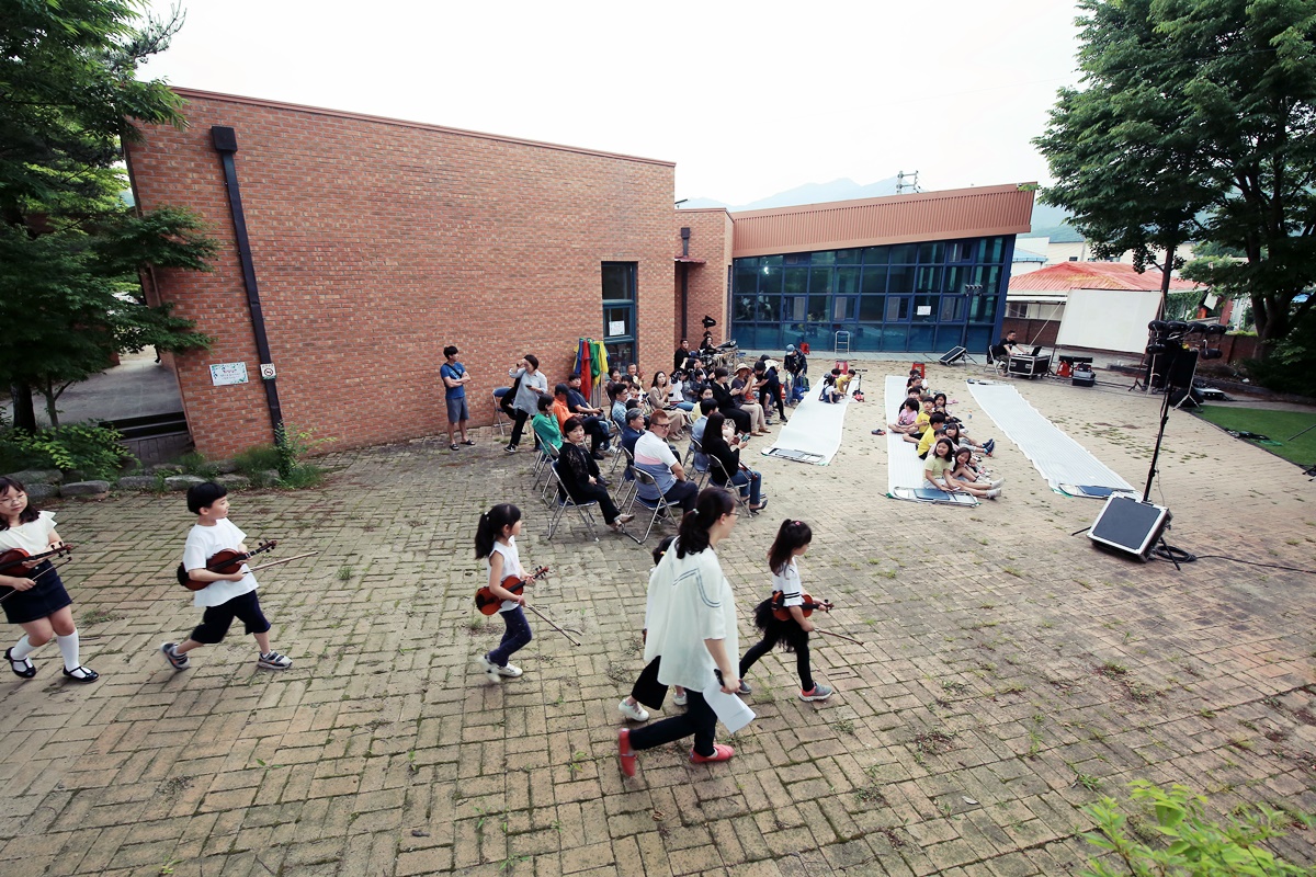 흥겨운 음악소리에 이끌려 찾아간 청소년 수련의 집 뒷마당에는 마을주민과 학생들로 가득했다. ‘여름 밤 별 헤는 밤’이라는 이름의 신나는 예술여행 가족콘서트가 열리고 있는 현장이다.