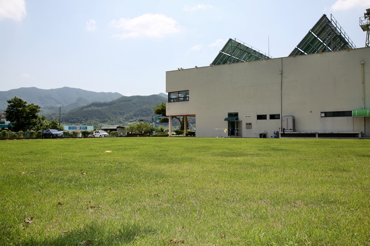 무풍면 행정복지센터는 무풍면소재지 입구 가장 넓은 들판 한가운데 자리 잡았다. 기존의 협소한 무풍면사무소를 대신해 찾은 터가 지금의 행정복지센터 자리다. 건축가가 건물을 설계하면서 가정 먼저 고려했던 것은 ‘면소재지 입구에 위압감을 주는 건물이 되어서는 안된다’였다. 한적한 들판 한가운데 우뚝 솟은 건물의 존재가 주변의 자연뿐만이 아니라 사람까지도 압도할 수 있기 때문이다.