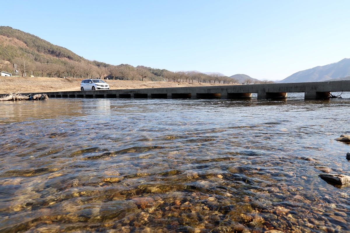무주 반딧불장터에서 남대천을 따라 가는 도로 아래로 강변 산책로가 조성되어 있다. 서면마을 입구에 다다를 무렵의 벼랑 구간만 제외하고는 내내 강변길이 이어진다. 반딧불장터에서 서면마을까지는 4km, 길은 다시 1.5km 가량 더 이어지다 벼랑 아래서 끝이 난다. 이 길을 서면마을 사람들은 ‘S라인 길’이라 부른다. 굽이진 길의 모양 때문인데, 날이 풀리면서 이 길을 걷는 사람들이 부쩍 늘었다.