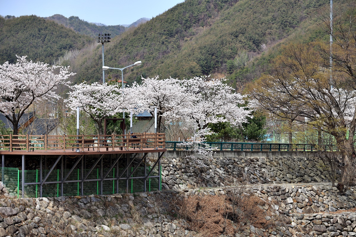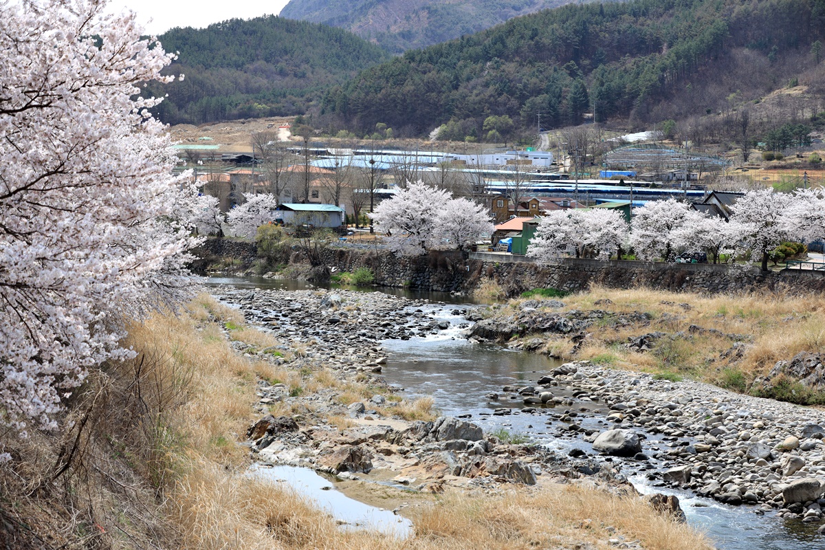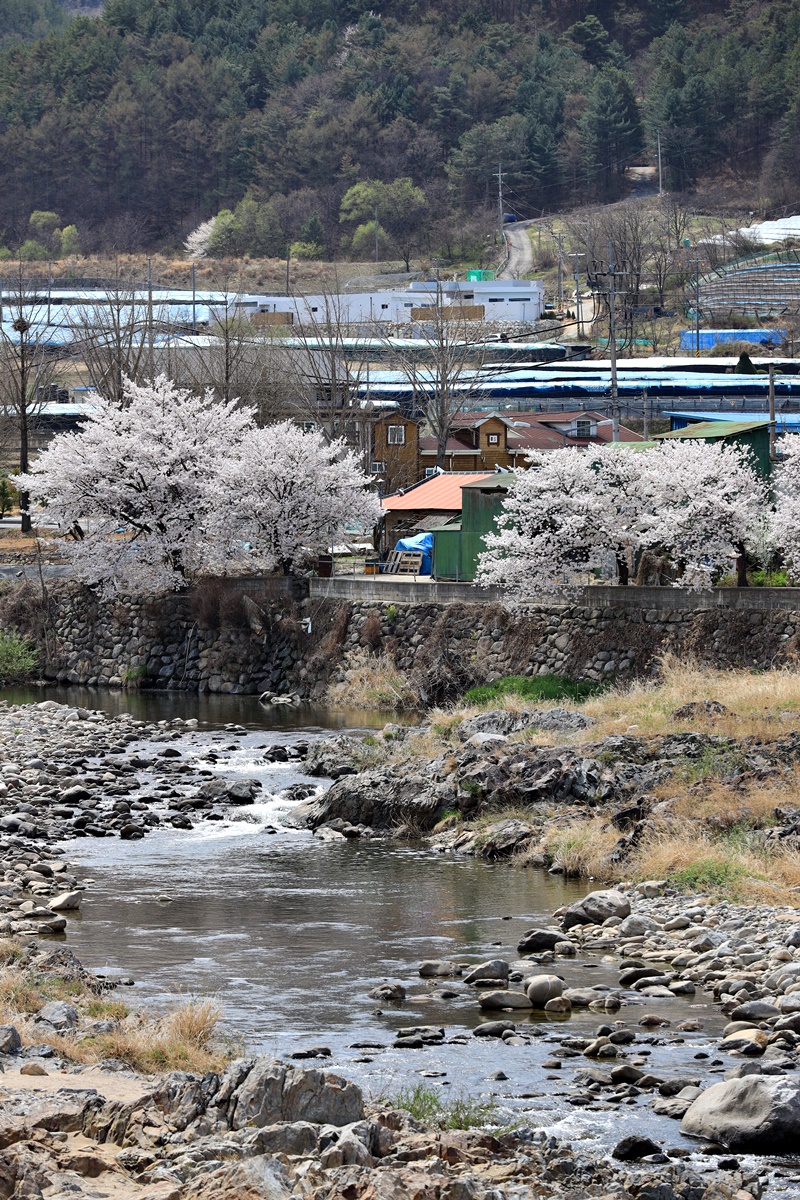 지난 토요일 금강에서부터 남대천을 거슬러 오르며 벚꽃 촬영을 했다. 예년 같으면 남대천 하류 서면마을이나 무주읍내에 비해 상류 쪽은 보통은 며칠 차이가 났었는데 올해는 거의 동시에 모든 지역이 꽃을 피웠다. 무주의 대표적인 벚꽃 명소인 설천면 뒷작금에도 만개 수준이다.