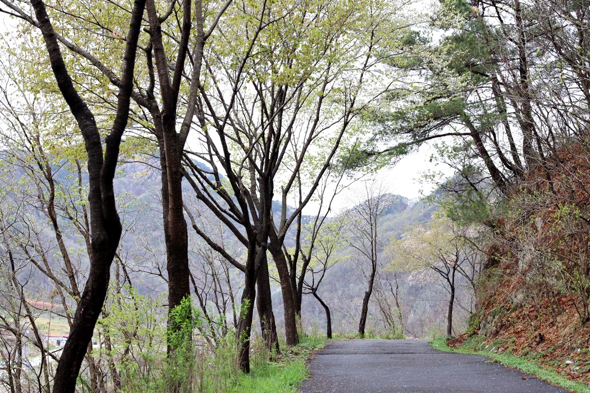 비 그친 아침 금강에 꽃물이 흐른다. 금강변 마실길이 지나는 잠두마을 옛길에는 벚꽃과 조팝꽃, 산복숭아꽃이 어우러지고 산벚꽃까지 만발했다.