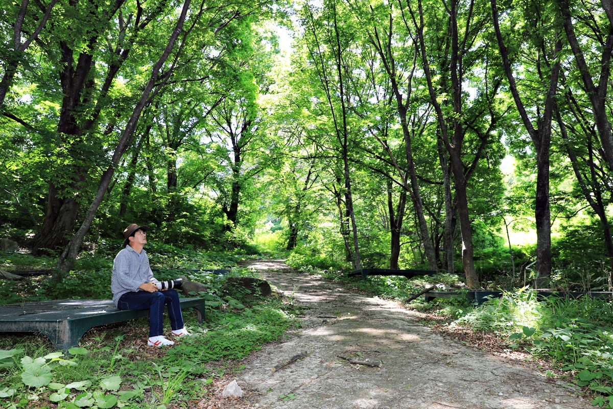 덕동마을은 더 높은 곳에 있다. 뒤돌아보면 산비탈 밭이 죄다 사과밭이다. 덕지리 일대에서 가장 넓은 공간이기도 하다. 지금의 사과밭은 담배 농사를 짓던 곳이다. 덕동마을은 구천동 상오정으로 넘어가는 오두재 바로 아랫마을이다. 마을 입구에 다다르면 왼쪽 개울 건너에 활엽수가 빼곡히 들어찬 숲이 있다. 지금의 마을길이 생기기 전, 이 숲 사이로 난 오솔길이 마을 진입로였다. 숲에는 잠시 쉬어가기 좋은 평상이 놓여 있다. 평상에 걸터앉았다. 우거진 수목 사이로 들어온 햇살에 초록빛 이파리가 황금빛으로 빛난다. 주위를 둘러보니 이른 봄에 피는 야생화인 족도리풀과 풀솜대, 너도 바람꽃이 바닥에 쫙 깔려 있다.