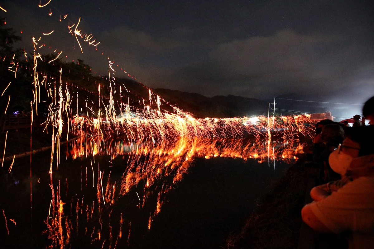무궁무진(無窮無盡)! 무주 한 바퀴-24 낙화놀이, 수면 위로 떨어지는 불꽃의 향연