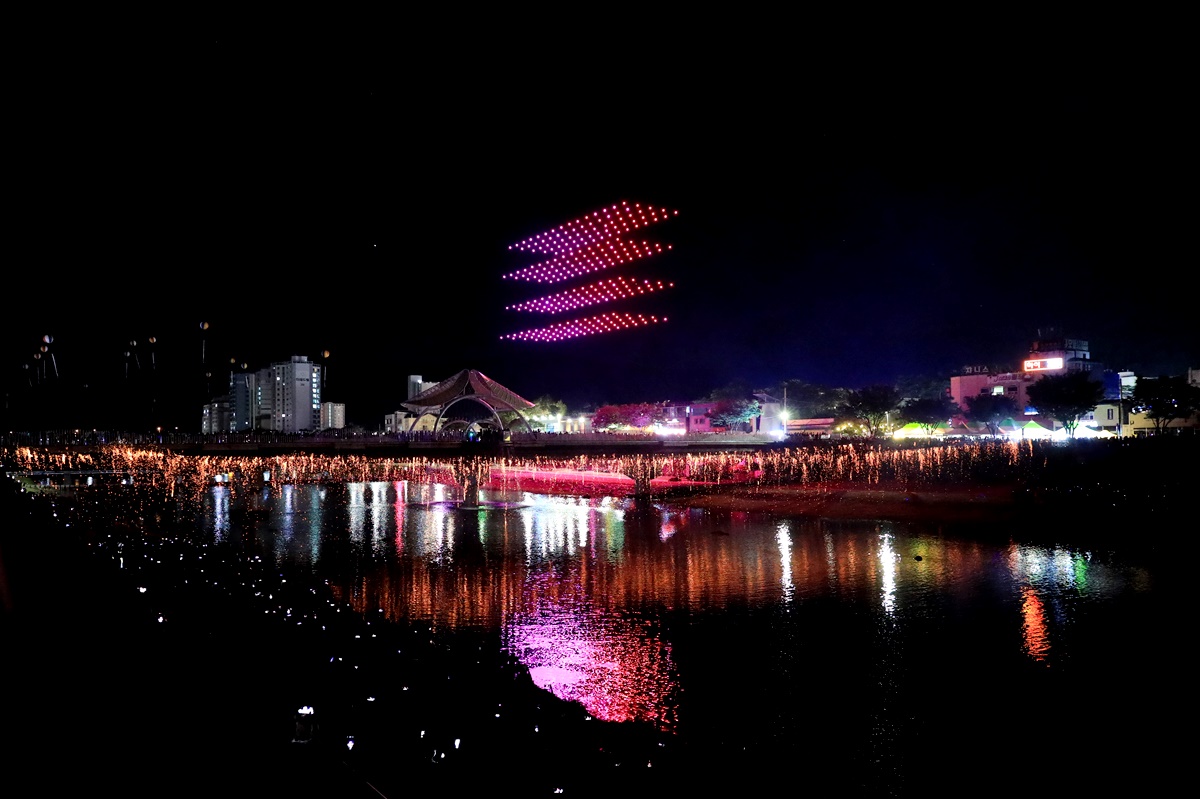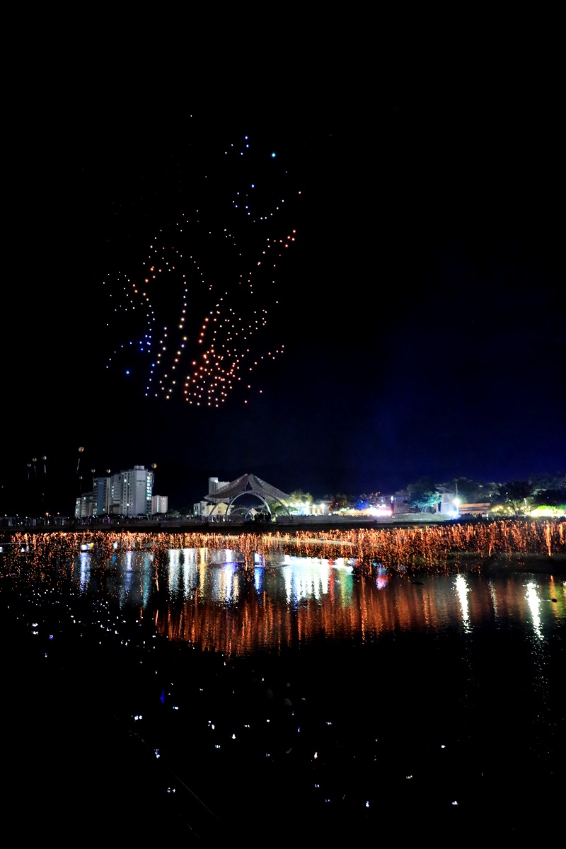 낙화놀이와 불꽃놀이, 드론쇼는 무주 남대천에서 9월 2일과 3일 두 차례 더 진행된다.