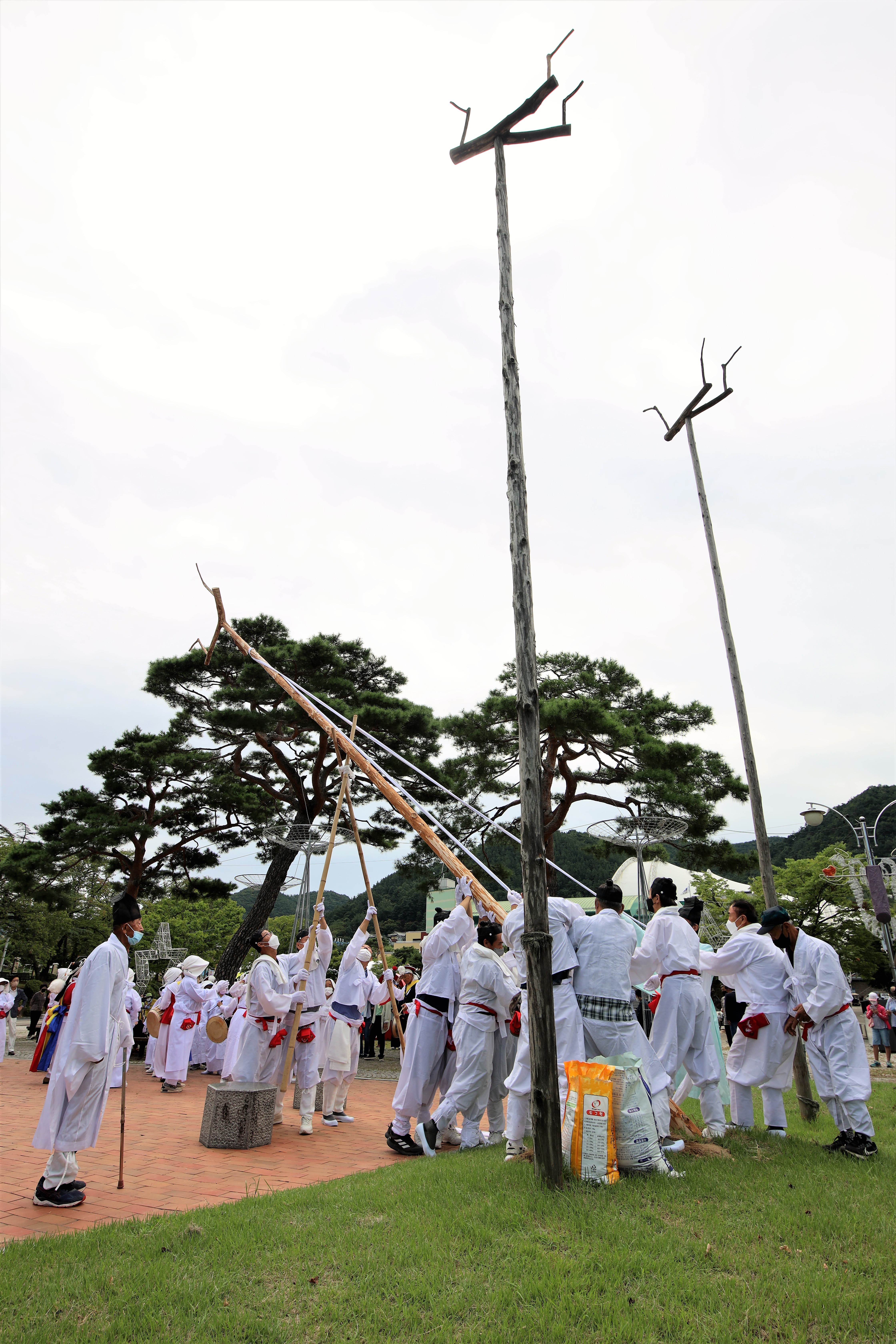 무주의 전통민속놀이는 ‘산의실 솟대세우기’로 시작했다. 무주반딧불축제의 성공적인 개최를 기원하는 의미에서 무주읍 산의실 주민들이 풍년농사와 마을의 안녕을 기원하며 마을 입구에 솟대를 세워 오던 솟대제를 개막식이 열리는 축제 첫날에 행사장인 예체문화관 앞에서 진행했다. 농악대를 앞세우고 등장한 약 7m 길이의 솟대를 예년에 세워진 솟대와 함께 나란히 세운 후 주민들은 제를 올리고 뒤풀이 굿으로 놀이를 마무리했다.