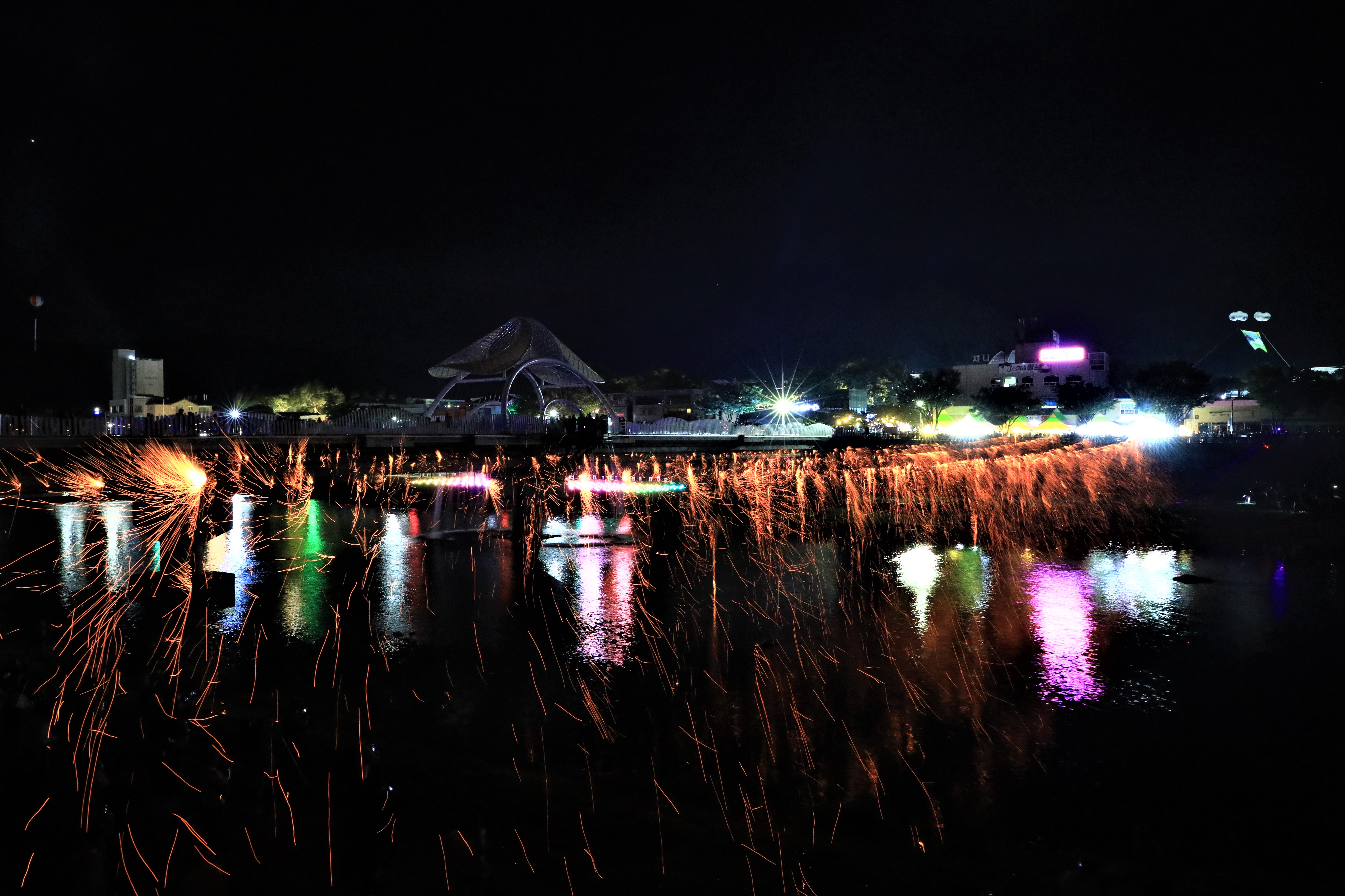 저녁에는 안성면 두문마을 주민들이 진행하는 ‘안성낙화놀이’ 시연이 있었다. 불꽃놀이를 시작으로 낙화봉에 불을 붙이자 관람객들은 숨을 죽이고 불꽃이 휘날리는 장면을 감상했다. 최근 TV 예능프로그램에 낙화놀이가 등장하면서 관심이 높아진 탓인지 예년에 비해 많은 인파가 남대천에 모였다. 남대천을 가로지르는 8개의 줄에 걸린 3천여 개의 낙화봉의 불꽃이 절정에 다다르자, 관람객들의 스마트폰 불빛과 낙화놀이의 불꽃이 어우러져 환상적인 빛의 향연이 펼쳐졌다.