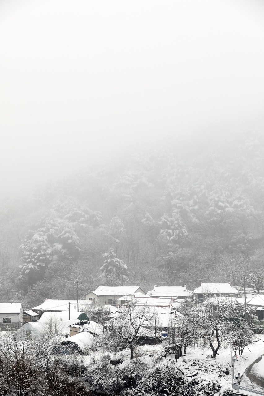 입춘이 지나고 며칠 후, 춘설이 내렸다. 간밤에 눈발이 날리는 것을 보고 잠자리에 든 터라, 아침에 눈을 뜨자마자 습관적으로 창문을 열었다. “왔네. 왔어!” 마당에 눈이 소복이 쌓였다. 지체없이 카메라를 둘러메고 나갔다. 하지만 웬걸? 해발 500미터인 기자가 사는 동네를 벗어나자 눈은 보이지 않았다. 허탈한 마음에 눈이 쌓여 있을 만한 골짜기를 찾아갔다. 역시! 탁월한 선택이었다. 그곳에는 기자가 사는 동네보다 세 배는 더 많은 눈이 쌓여 있었다.