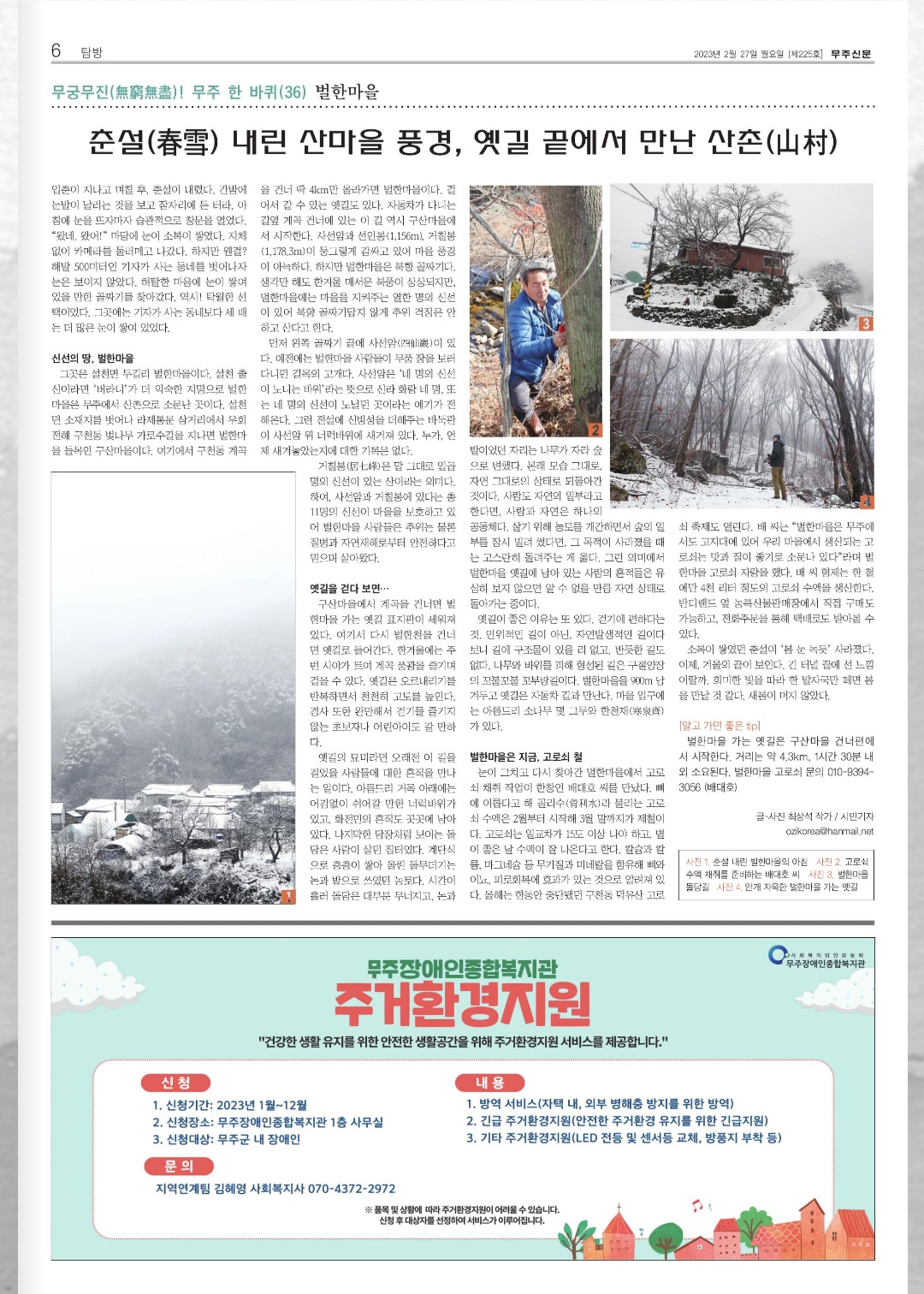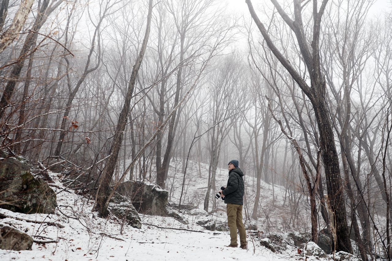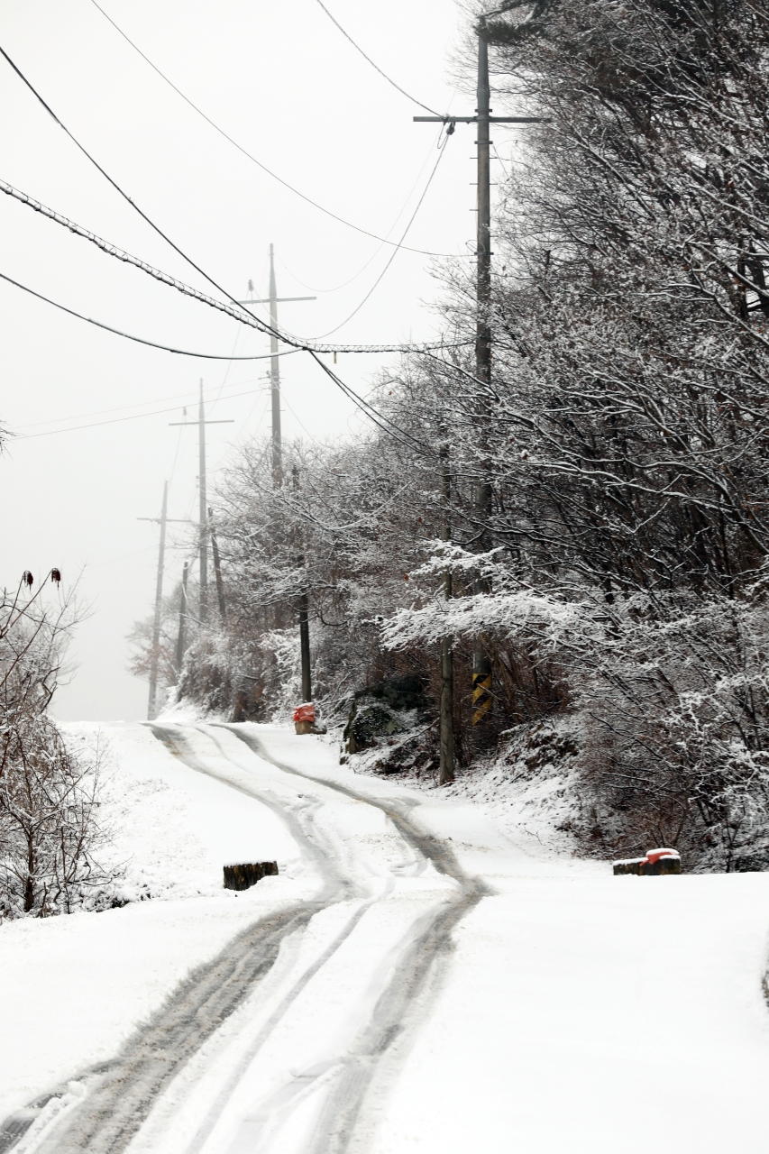 입춘이 지나고 며칠 후, 춘설이 내렸다. 간밤에 눈발이 날리는 것을 보고 잠자리에 든 터라, 아침에 눈을 뜨자마자 습관적으로 창문을 열었다. “왔네. 왔어!” 마당에 눈이 소복이 쌓였다. 지체없이 카메라를 둘러메고 나갔다. 하지만 웬걸? 해발 500미터인 기자가 사는 동네를 벗어나자 눈은 보이지 않았다. 허탈한 마음에 눈이 쌓여 있을 만한 골짜기를 찾아갔다. 역시! 탁월한 선택이었다. 그곳에는 기자가 사는 동네보다 세 배는 더 많은 눈이 쌓여 있었다.