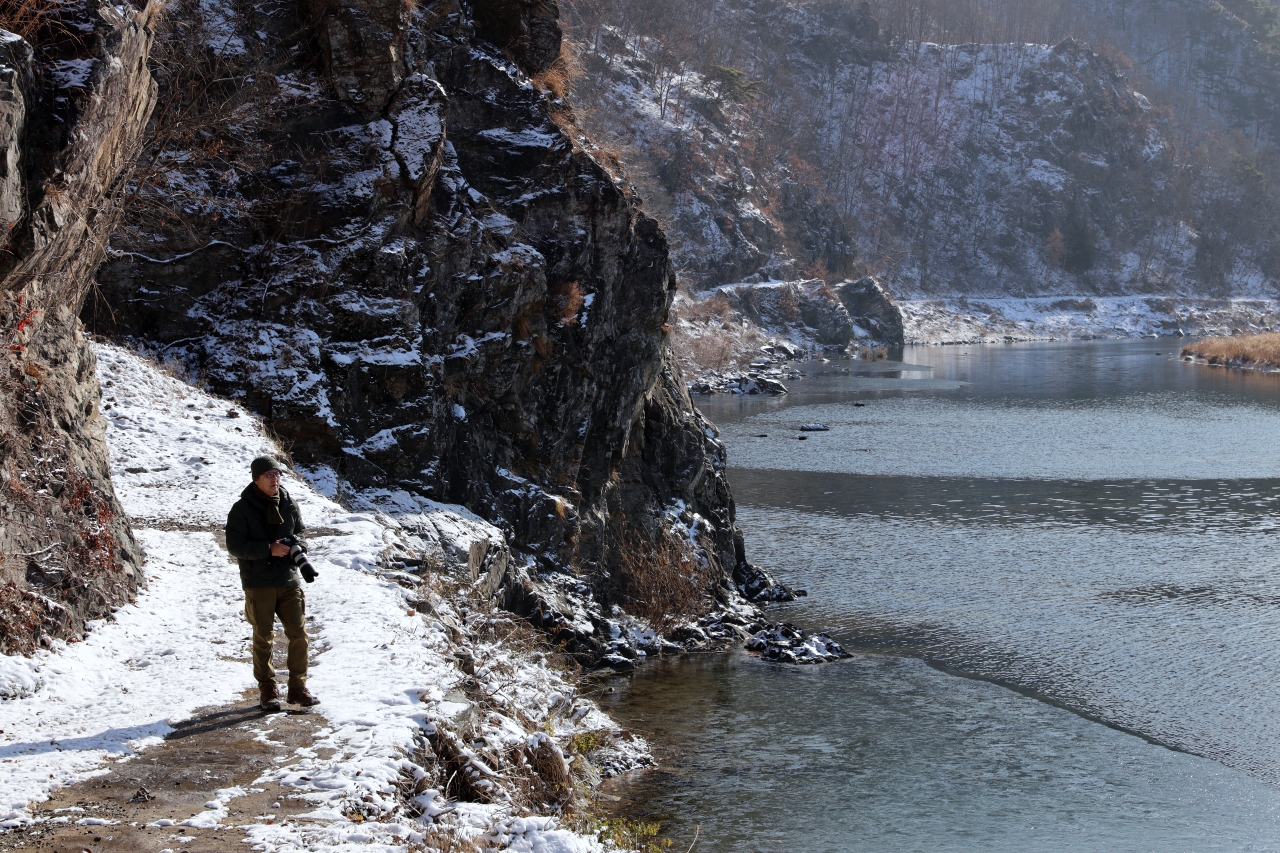 강을 따라가던 길은 깎아지른 절벽 사이를 지난다. 질마바위다. 마을 주민들이 손수 정으로 쪼아가며 길을 냈다고 전해진다. 질마바위 아래 강변에 세워진 작은 표지석에는 희미하게 ‘1971년 5월 20일’이라고 쓰여 있다. 지금으로부터 약 50여 년 전에 있었던 일이라는 얘기다. 당시 강 건너 앞섬마을 아이들은 나룻배를 한 번만 타며 읍내로 나갈 수 있었지만, 뒷섬마을에서는 강을 두 번 건너야 했다. ‘금강맘새김길’은 강을 건너지 않고 학교에 갈 수 있도록 아버지가 길을 만들고 아이들이 학교에 가던 길이다.