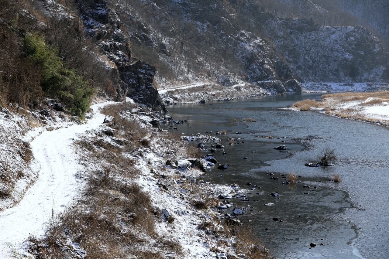 시작은 뒷섬마을 입구 후도교다. 다리를 건너 강변으로 내려서면 잘 정돈된 옛길을 만난다. 잠시 반듯한 길이 이어진다. 산자락에 바싹 달라붙은 이 길은 오래전 뒷섬마을 아이들이 책보를 짊어지고 학교를 가던 길이다. 지금은 앞섬과 뒷섬에 다리가 놓여 있지만, 다리가 없던 시절의 얘기다. 기억하건대, 그 시절에는 다리가 있었다고 해도 다들 십 리 길 정도는 걸어서 다녔다.