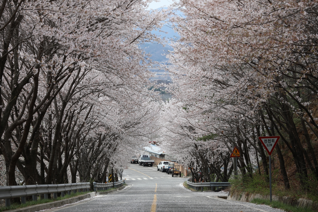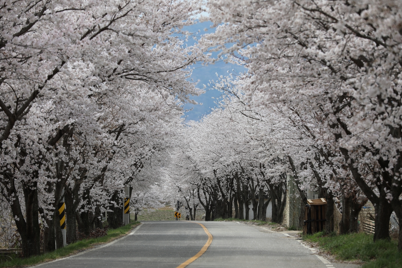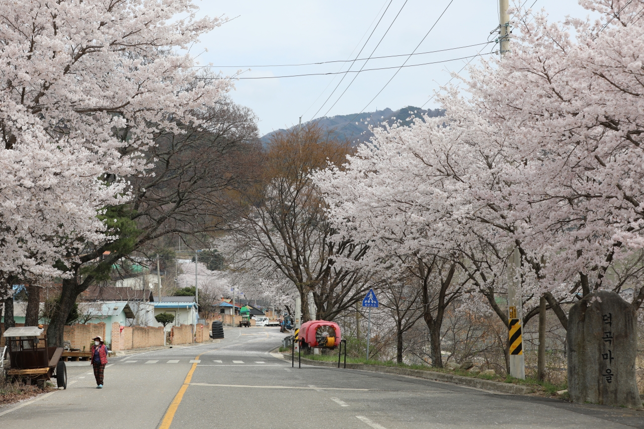 무주군 안성면소재지에서 덕산리 덕곡마을 가는 길의 가로수 대부분이 벚나무다. 백미는 수락마을에서 덕곡마을에 이르는 약 1.2km 구간.