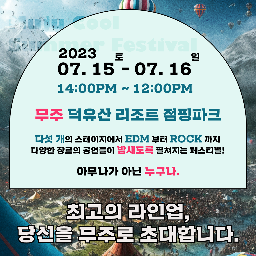 #무주쿨썸머페스티벌 #mujucoolsummerfestival #아무나가아닌누구나 #초대 #사전신청 #여름축제 #페스티벌 #무주 #무주리조트 #점핑파크 #캠핑
