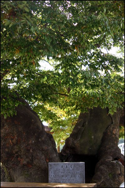 250년 된 마을의 보호수인 느티나무가 마을을 꽉 채운다.