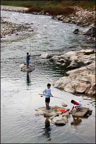 책가방은 내 팽개치고 바로 저렇게 강 낚시를 하곤 했지요.