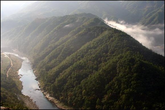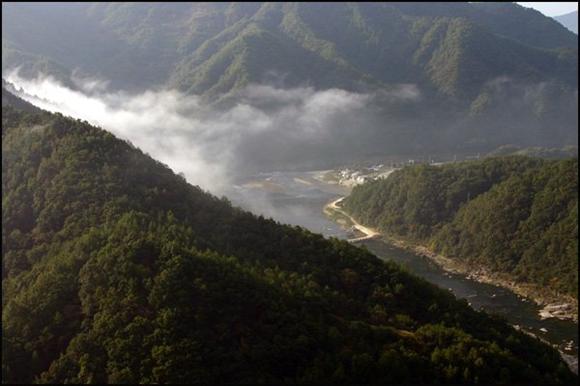 산에는 강이 흐르고, 강으론 산이 흐르더라.