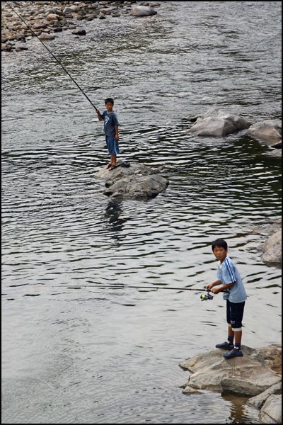 어린 강태공들까지..., 동네 아이들인 모양입니다.