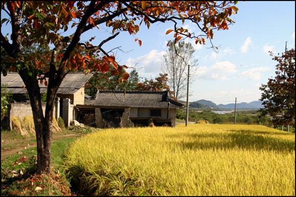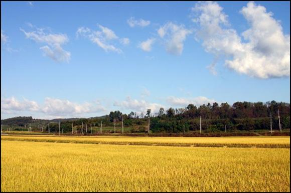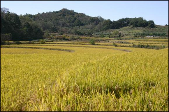특이한 점은 산꼭대기에 넓은 논이 있다.