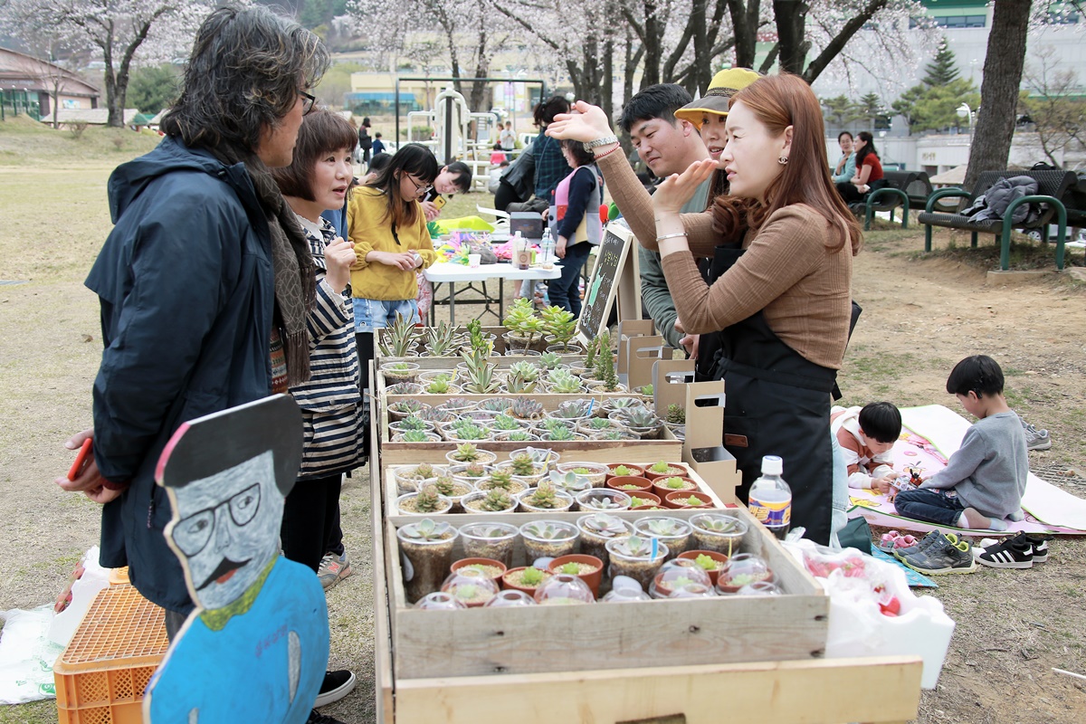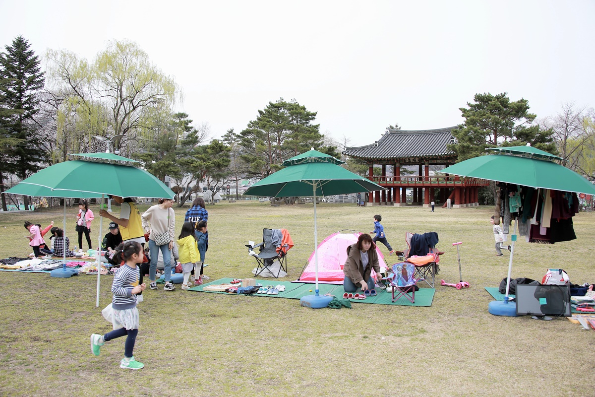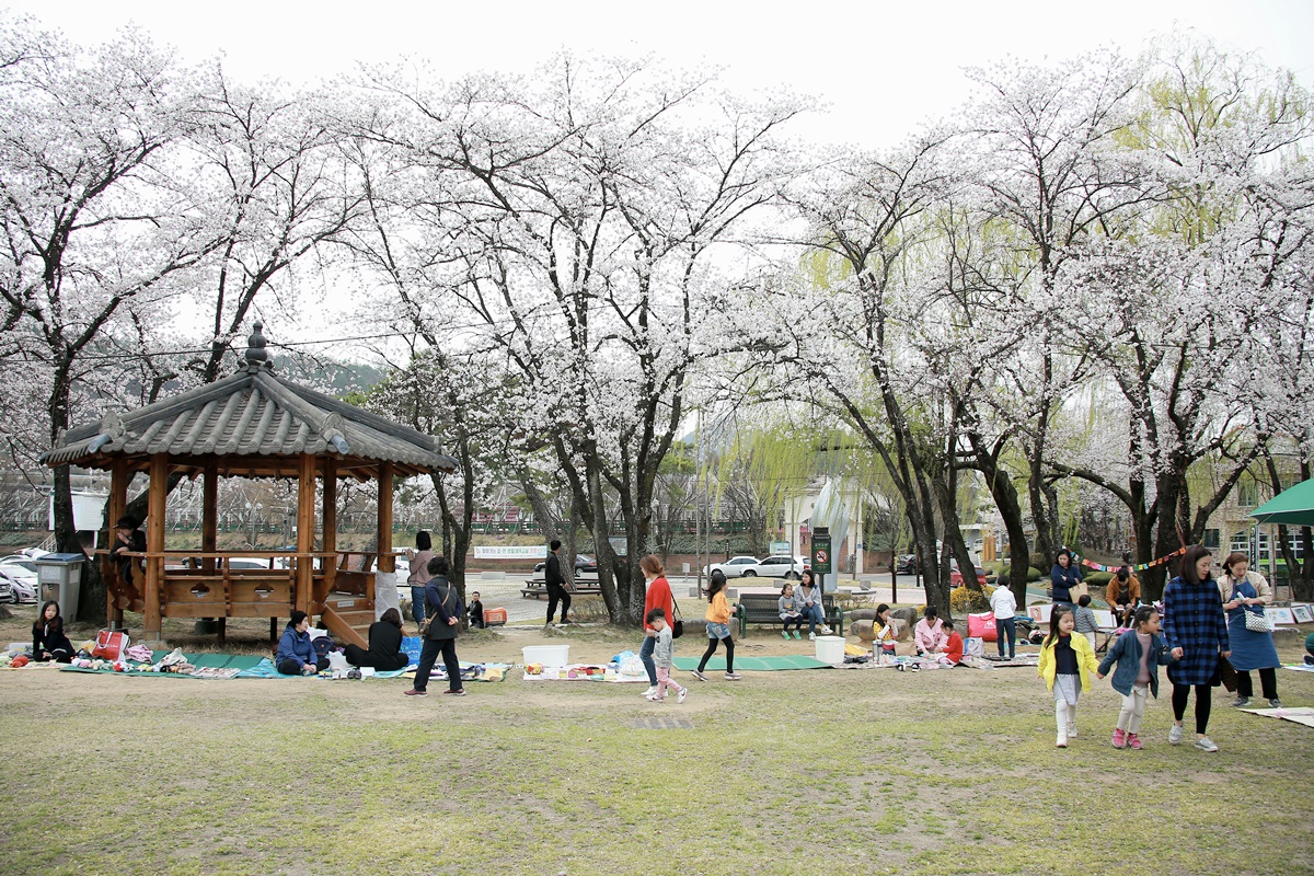 스물아홉 번째 무주 벼룩시장 마실이 4월 7일 일요일 한풍루 지남공원에서 열렸습니다. 2019년 첫 마실은 때맞춰 꽃을 활짝 피운 벚꽃 그늘 아래서 진행되었습니다.