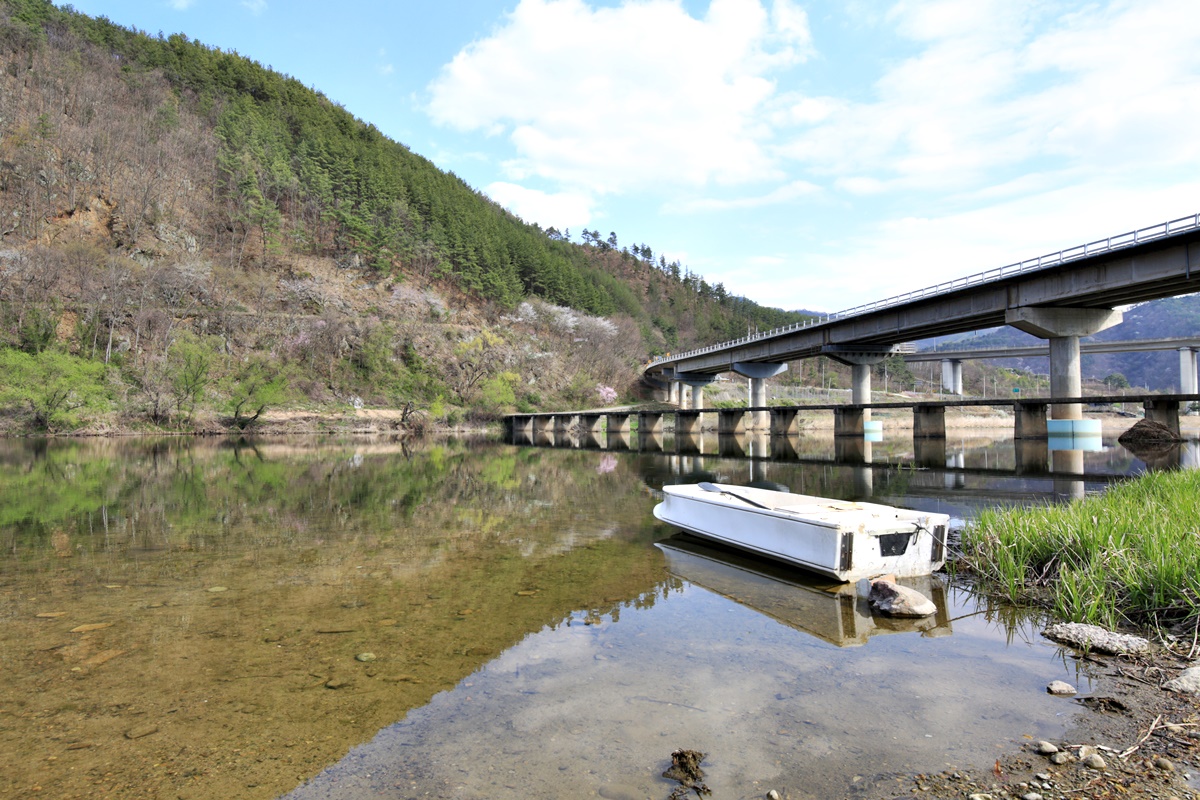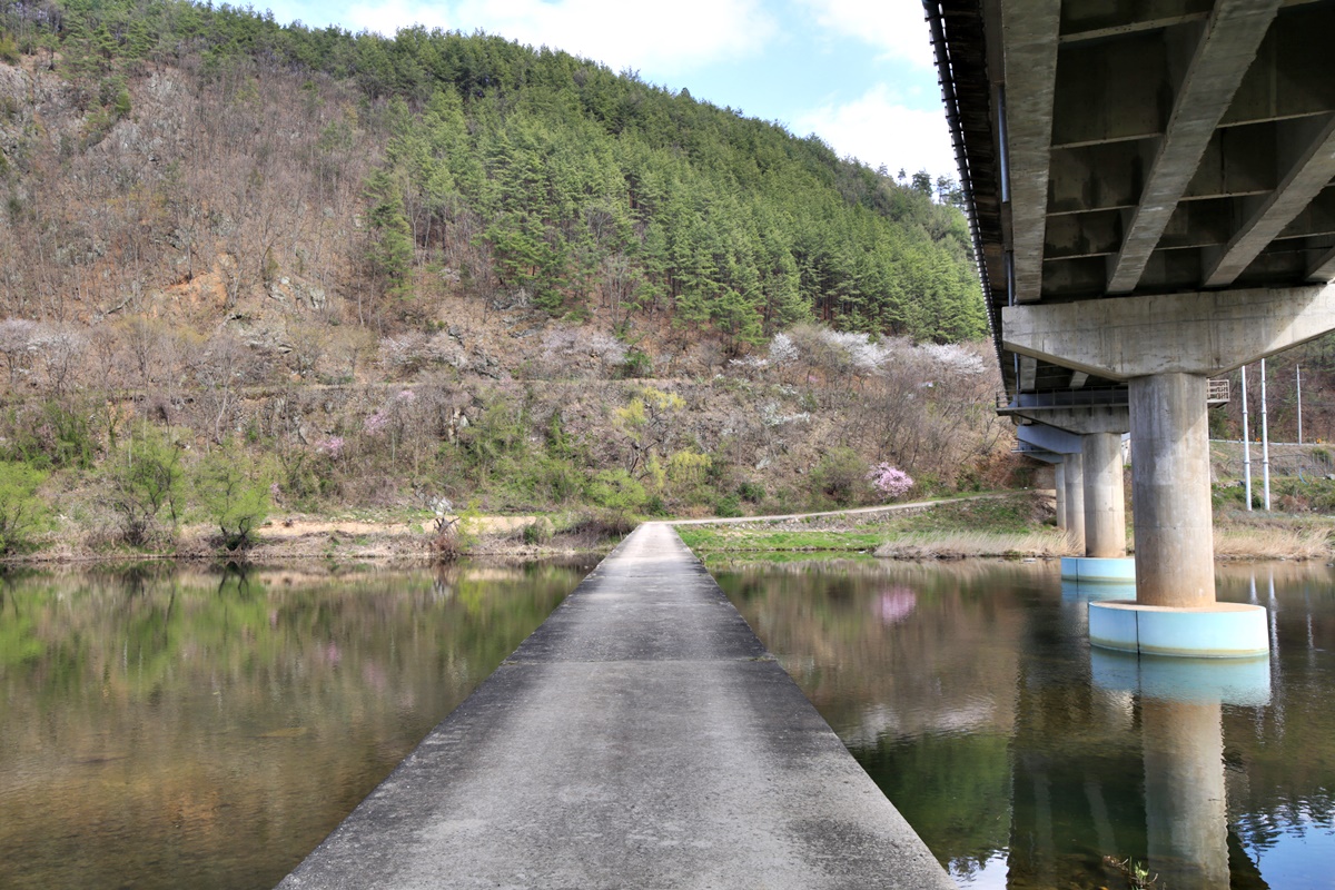 무주에서 벚꽃이 가장 늦게 피는 금강마실길 잠두마을 옛길 구간에도 봄물이 흐른다.