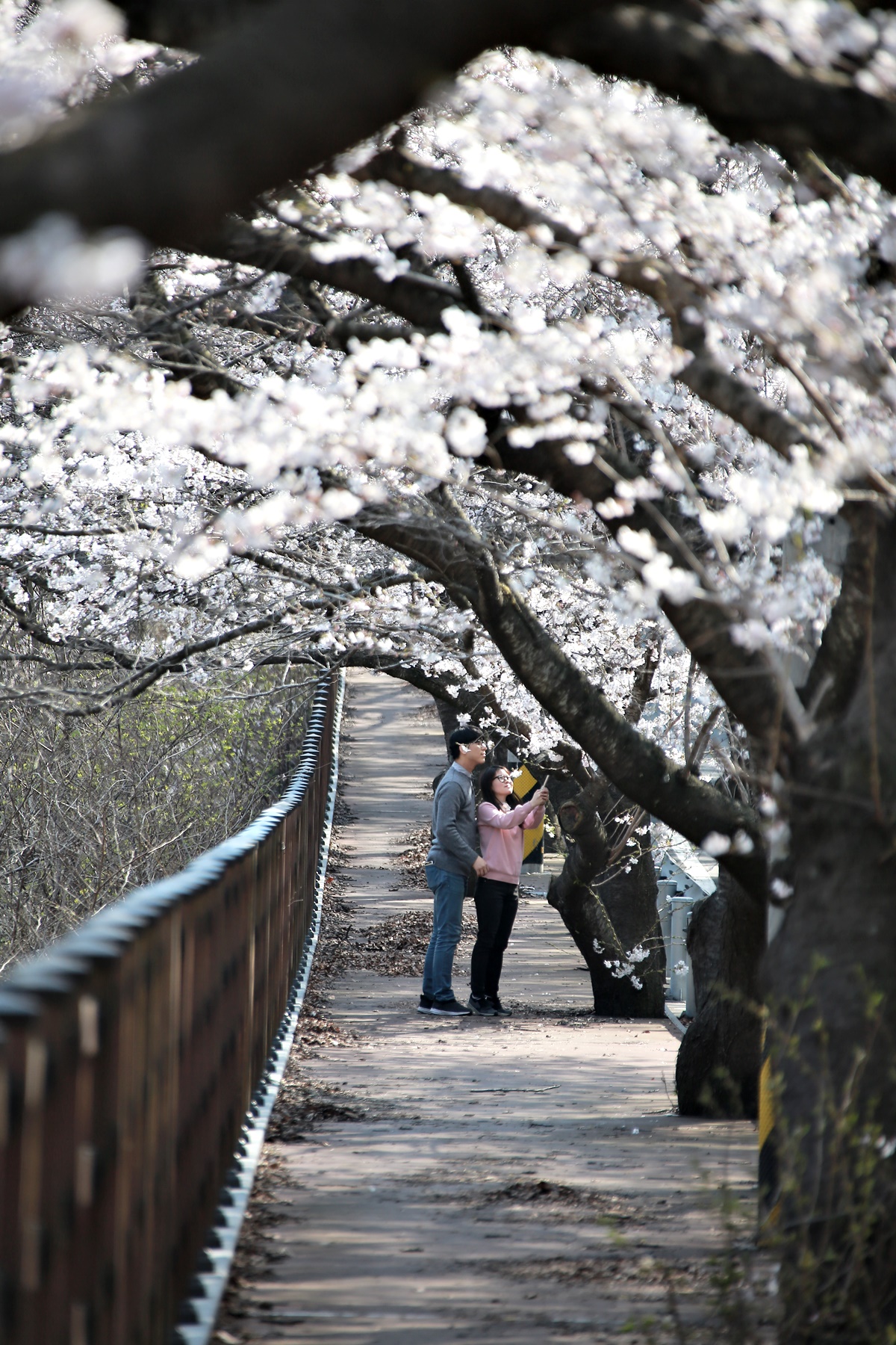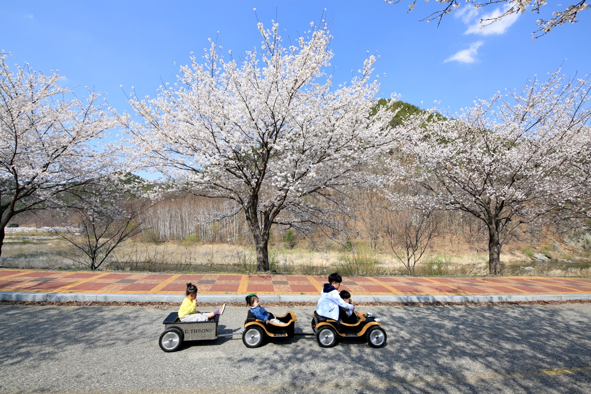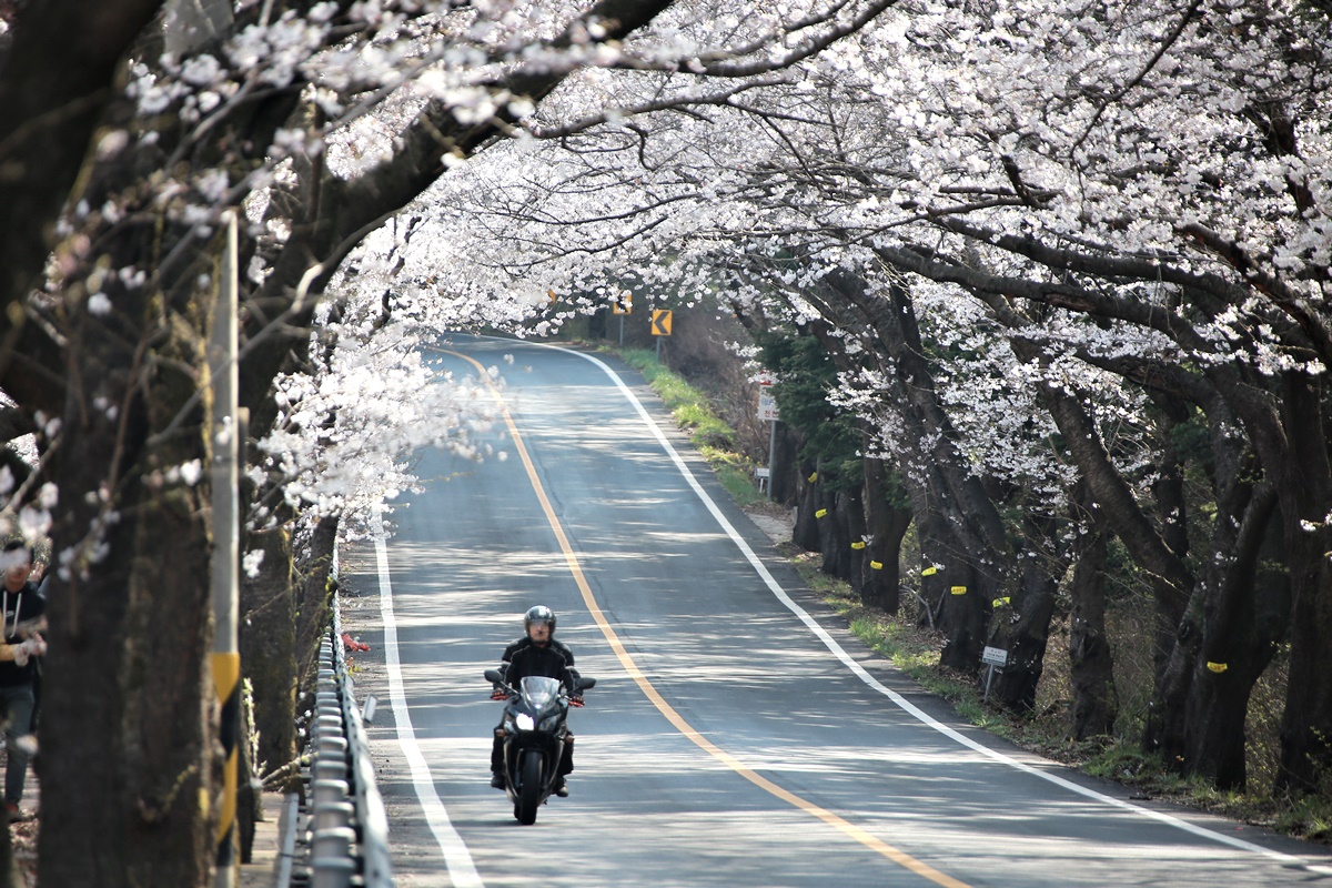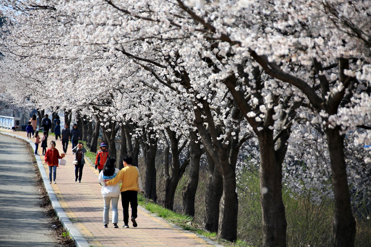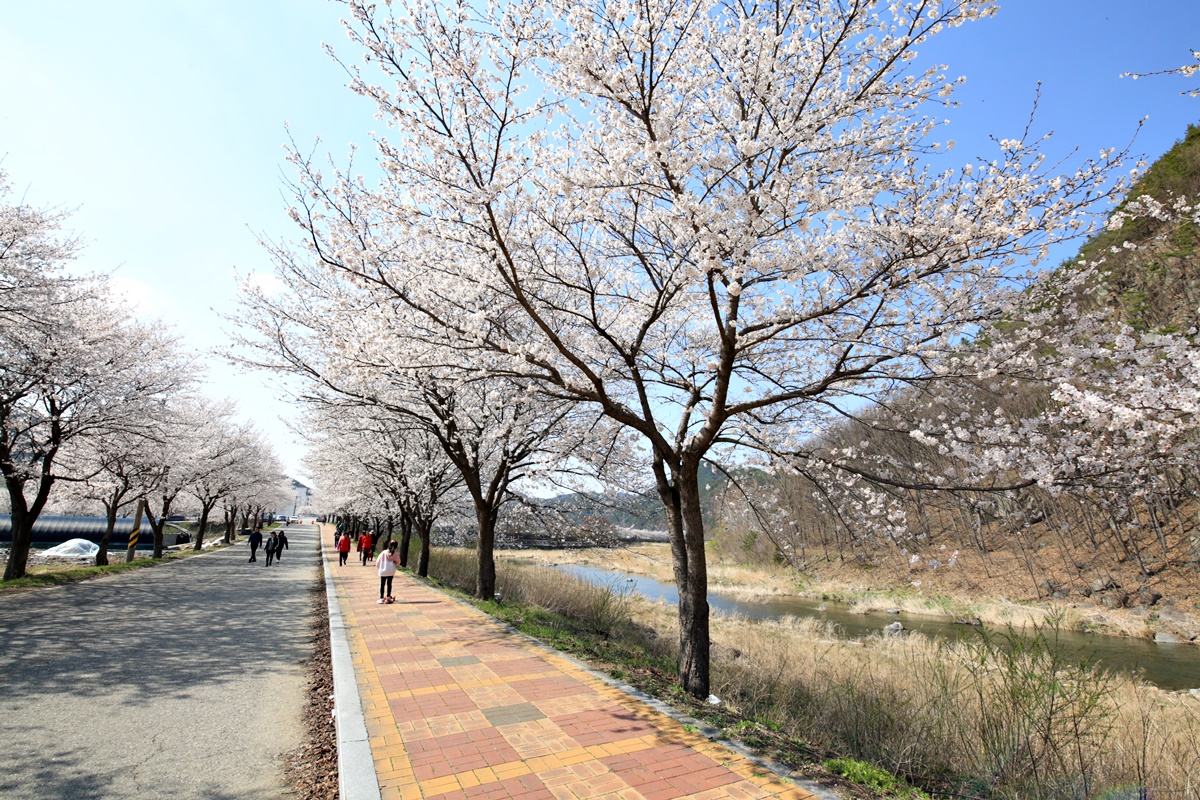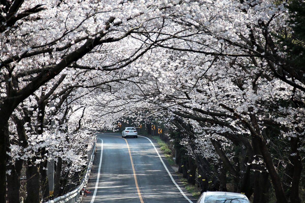오래전부터 무주의 벚꽃 명소로 소문난 구천동 벚꽃길도 같은 시기 만개했습니다. 구천동 벚꽃길은 무주구천동 33경 중 제1경인 나제통문에서 2경 은구암까지 2.2km 구간입니다.