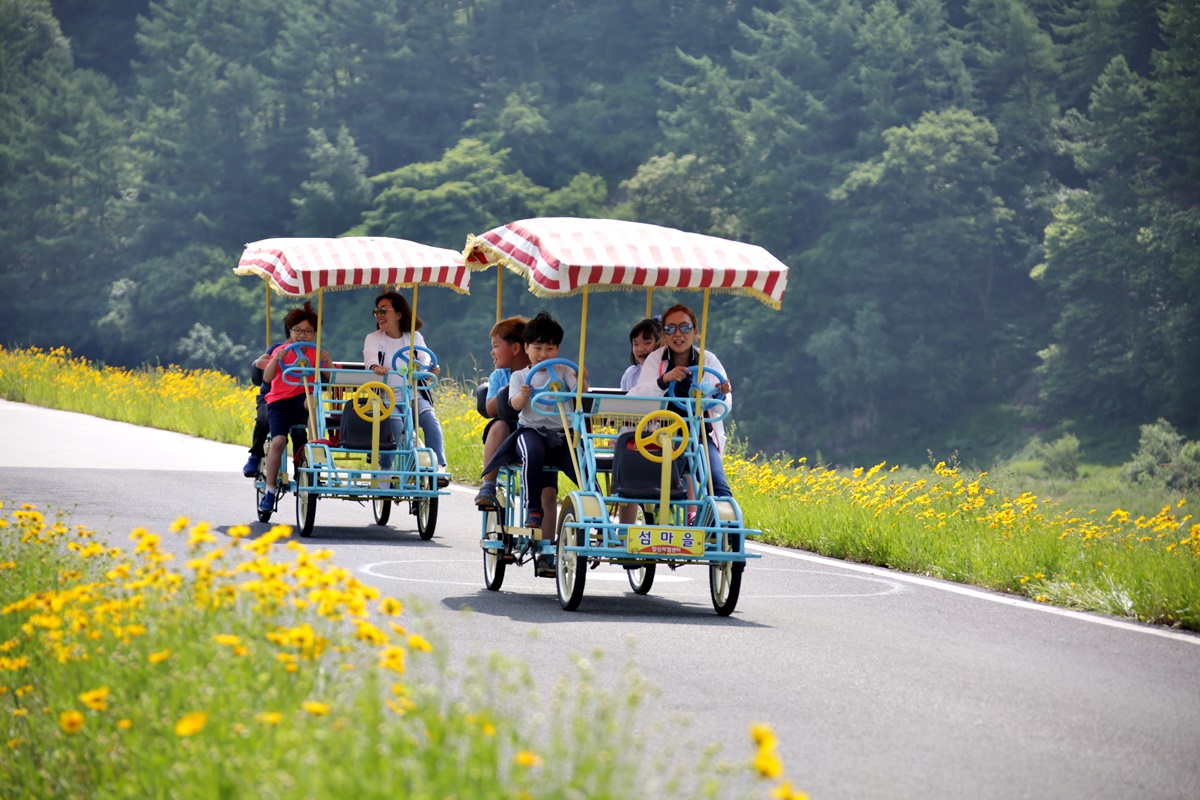 무주 앞섬마을 금계국 꽃길 자전거 타고 디퓨져만들기