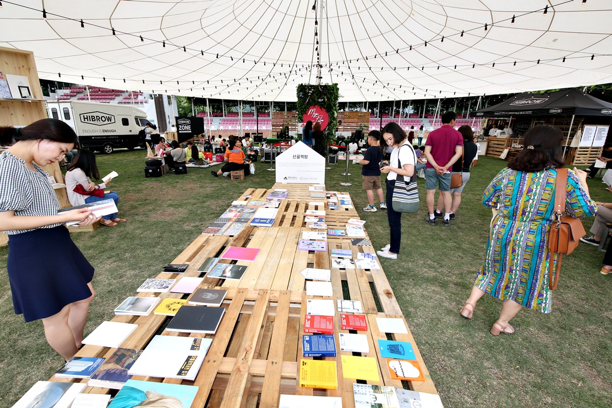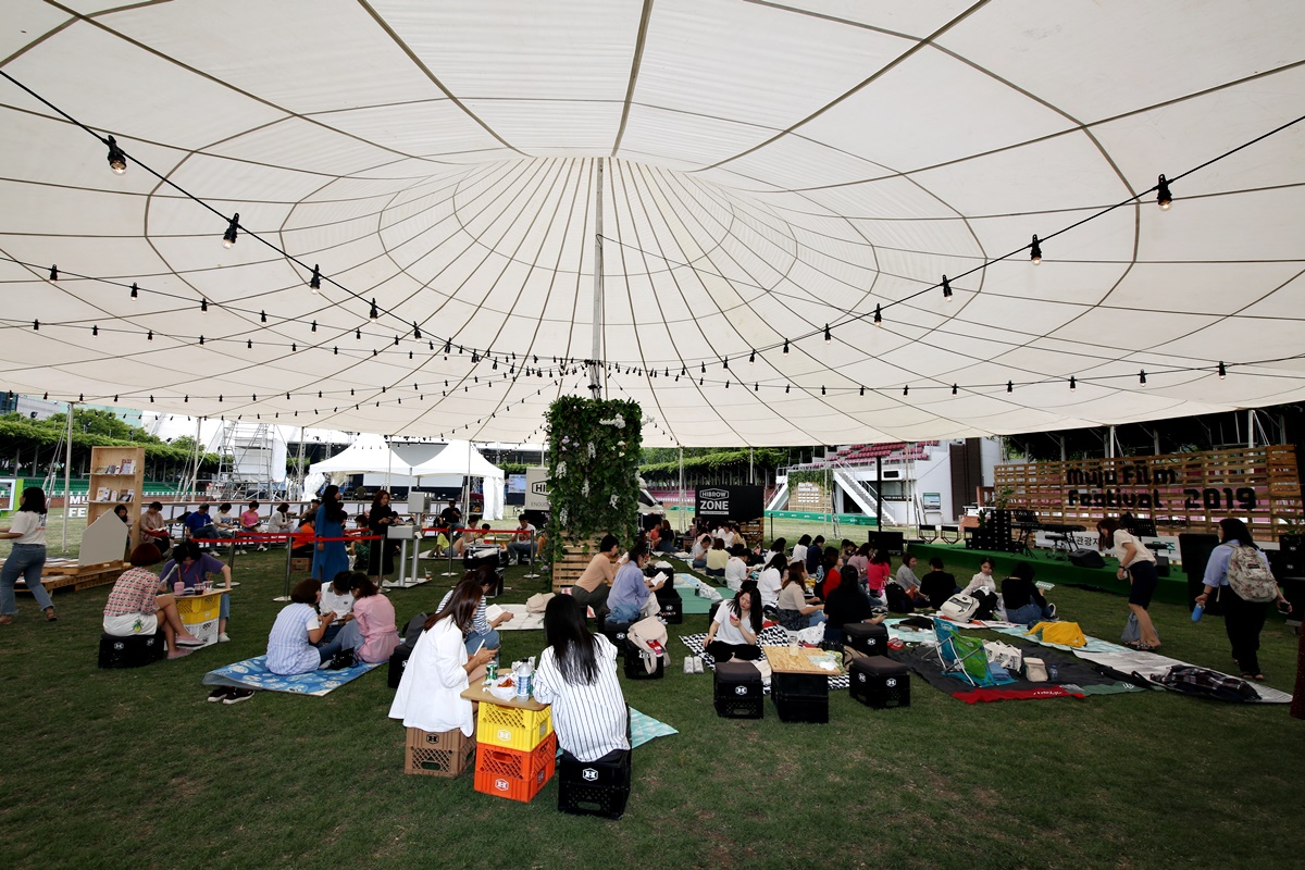 개막식과 야외상영을 하는 무주 등나무운동장에는 산골콘서트와 산골책방 등이 있는 하이브로우 존 낭만스테이지가 있습니다. 등나무운동장의 멋스러운 등나무 그늘과 함께 한낮 더위를 시키며 휴식을 취하는 공간이기도 합니다.