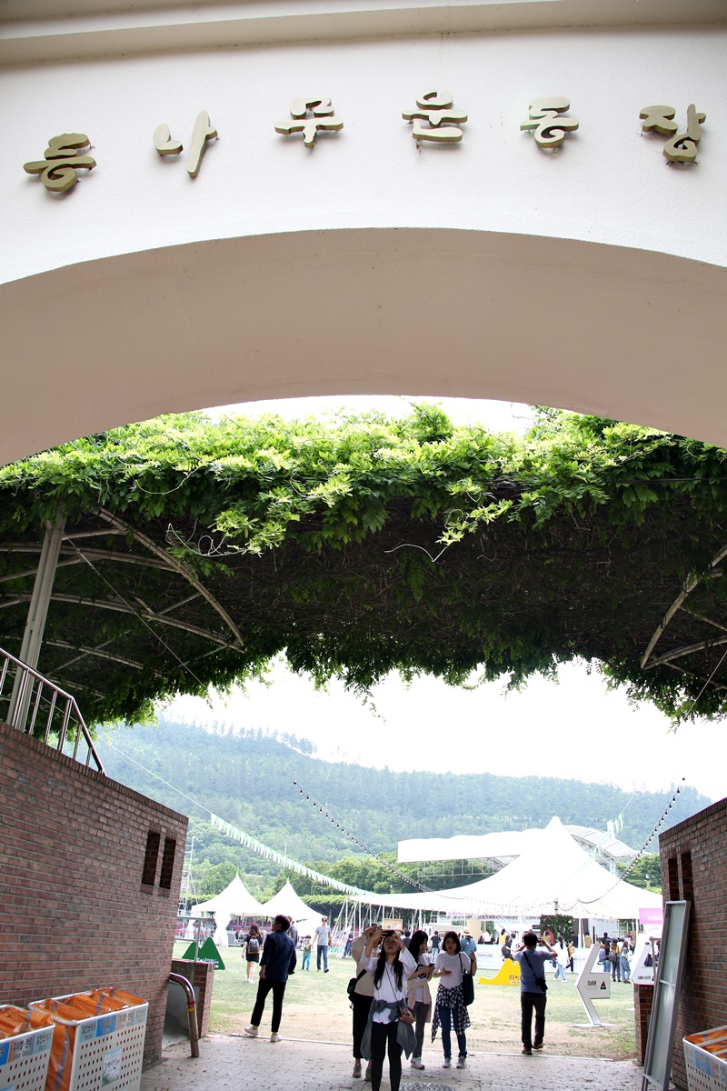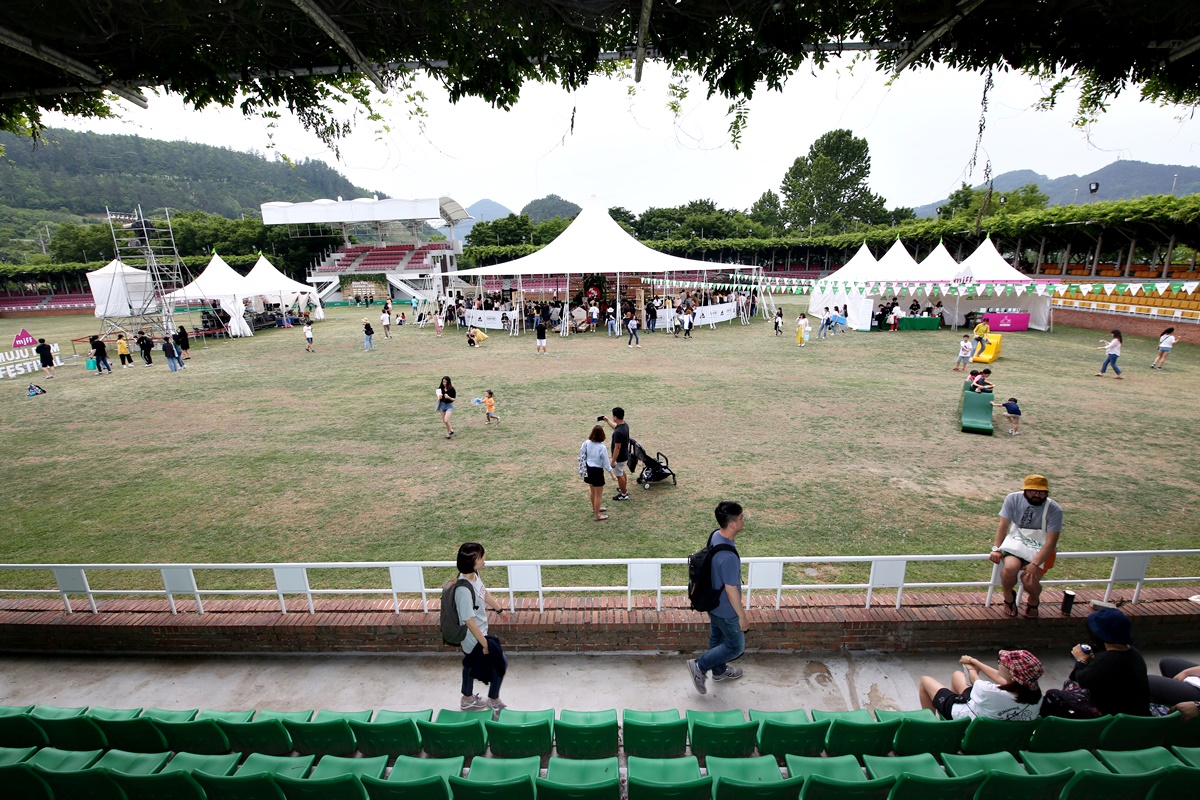 제7회 무주산골영화제 메인스테이지는 등나무운동장입니다. 대개는 공설운동장이라 부르지만 무주에는 어디에도 없는 등나무운동장이 있습니다.