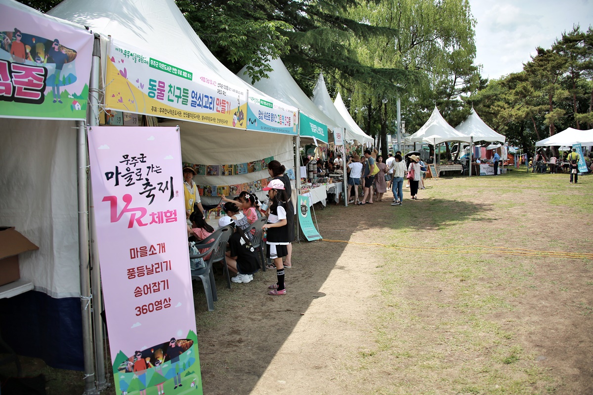 이번 행사에는 지역 셸러 50여 팀이 참여하고 무주군마을공동체지원센터에서 진행 중인 '사회적농업' 홍보부스 운영과 마을로 가는 축제 VR 체험, 마을 스탬프 이벤트, 그리고 무주고와 안성고, 설천고 학생들의 보이는 산골 라디오를 통해 영화제를 찾은 관광객들에게 색다른 즐거움을 보여줬습니다.