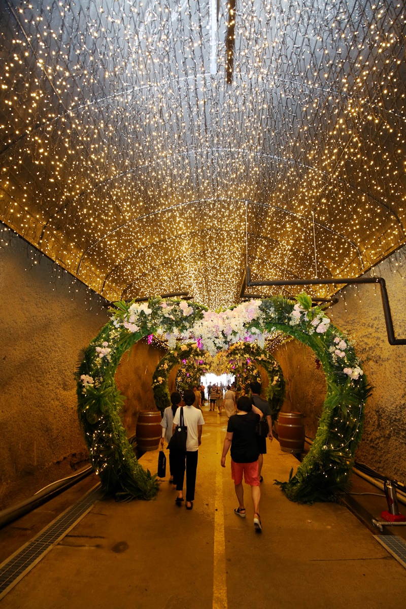 무주는 우리나라 머루 생산량의 60%를 재배하고 있습니다. 머루를 가공한 다양한 특산품이 있는데, 그중 단연 머루와인이 인기입니다. 머루와인 업체만 다섯 곳이나 됩니다. 적상산 중턱 머루와인동굴에 가시면 무주에서 생산되는 6종의 머루와 사과 와인을 시음하실 수 있습니다. 길이 약 300m, 동굴 내 온도는 13~14도로 30도를 기준하면 온도차가 무려 16~17도나 난다는 얘기죠. 그곳 근무자들은 한여름에도 패딩 재킷을 입고 계시죠. 모르고 들어갔다가 깜짝 놀라서 다시 나와 겉옷을 걸치고 들어가는 모습도 종종 보입니다. 무주 머루와인동굴이 최근 새단장을 했다고 해서 다녀왔습니다. 입장료(시음 포함 2,000원, 머루와인 족욕 3,000원)