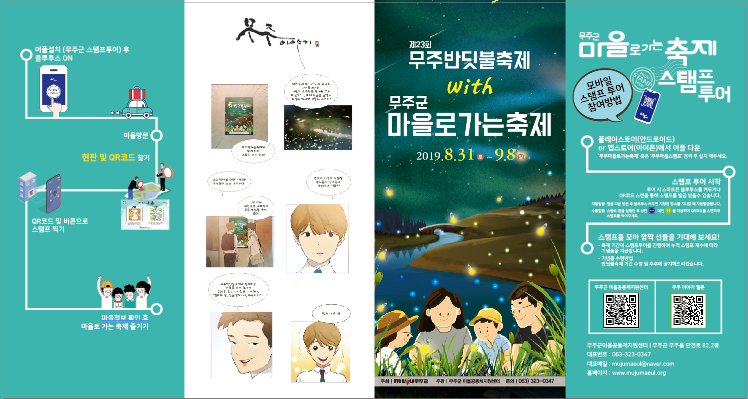 마을 세 곳 스탬프 인증 후 무주 반딧불축제장 내 '무주군 마을로 가는 축제' 부스에 가셔서 선물 수령하시면 됩니다.