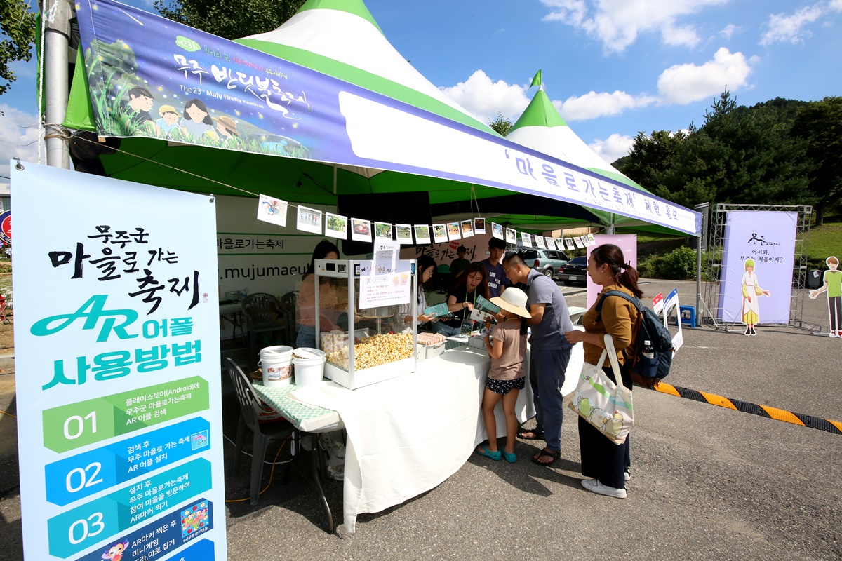 무주군 마을로 가는 축제 어플 다운 -> 지정된 마을 방문 -> QR 코드 및 비콘으로 스탬프 찍기