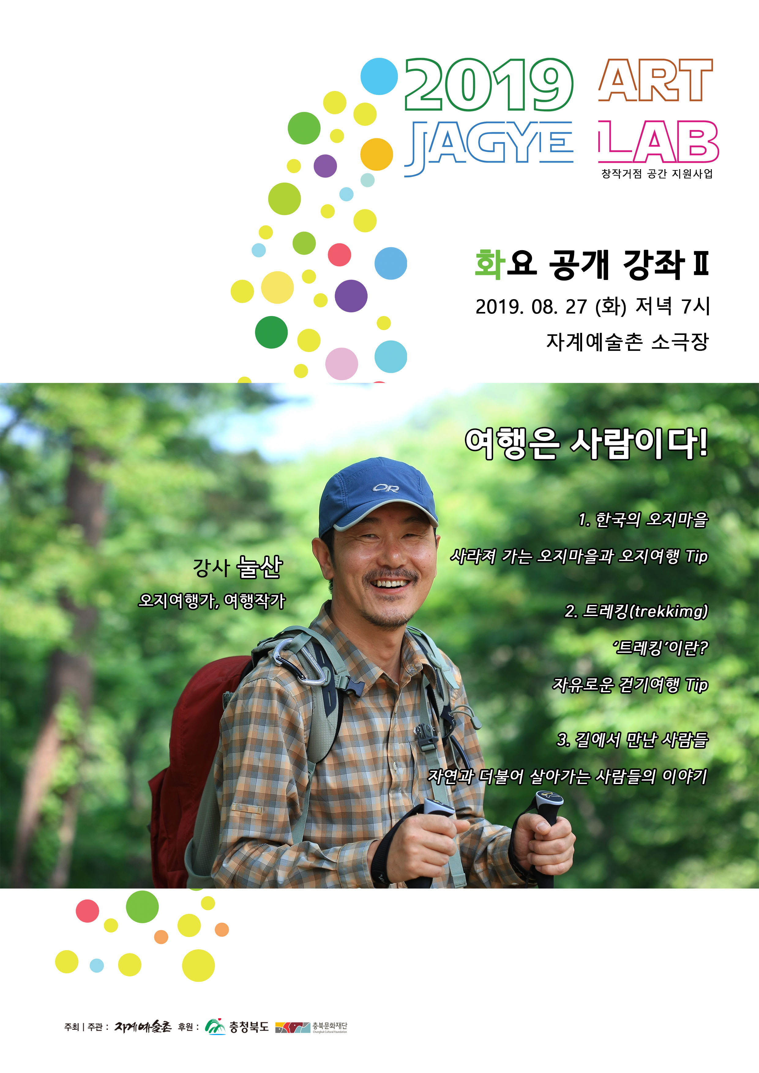 사람들에게 지난 20여 년간 두 발로 밟았던 우리 땅 속살과도 같은 ‘오지마을 이야기’를 하고 있습니다. 10명, 또는 수백 명이 모이는 공개된 장소에서 한국의 오지와 소읍, 자연과 더불어 살아가는 사람들 이야기가 주제입니다.