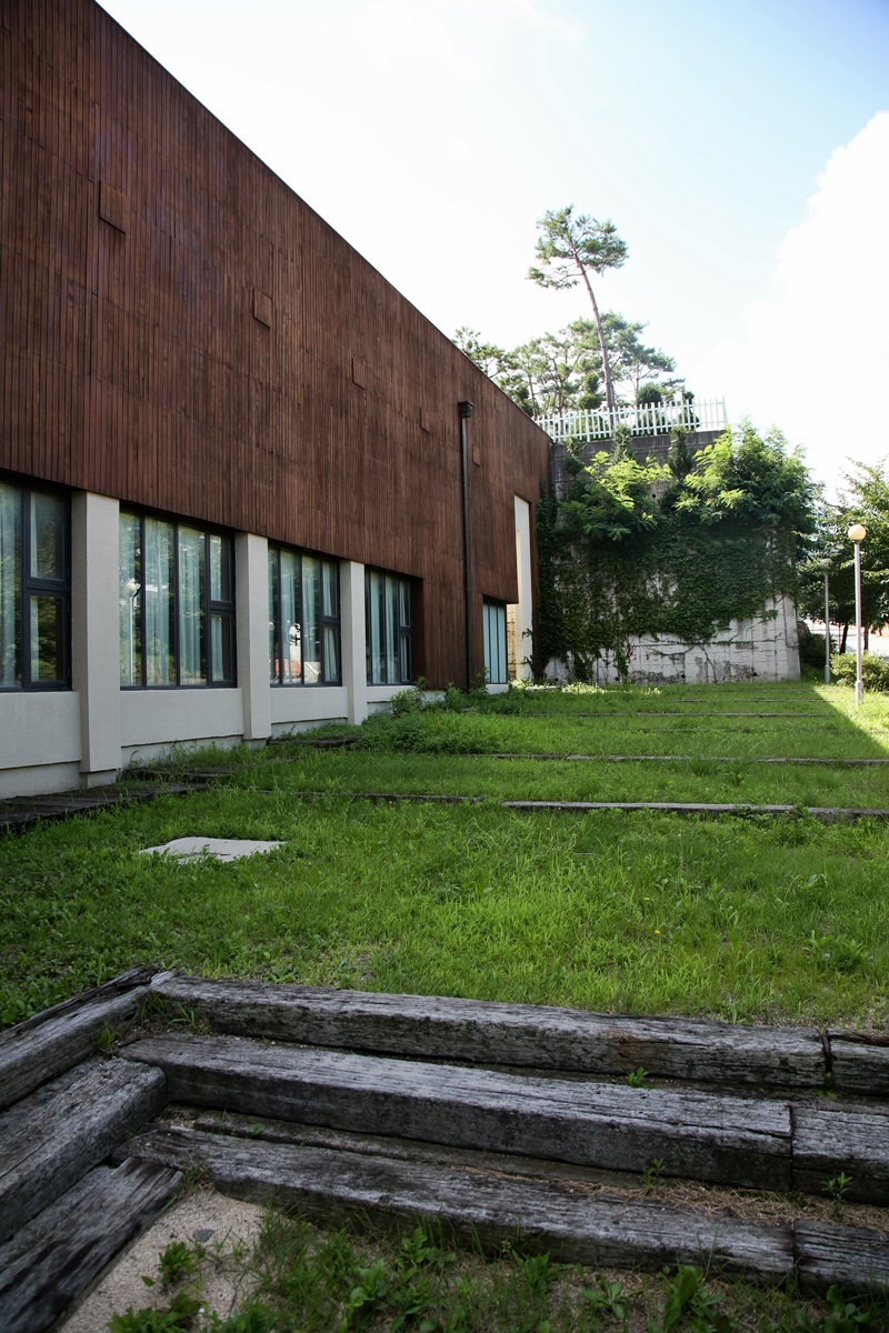 9미터 절벽 아래 있는 대지의 어려운 여건을 극복하고 완성한 건물