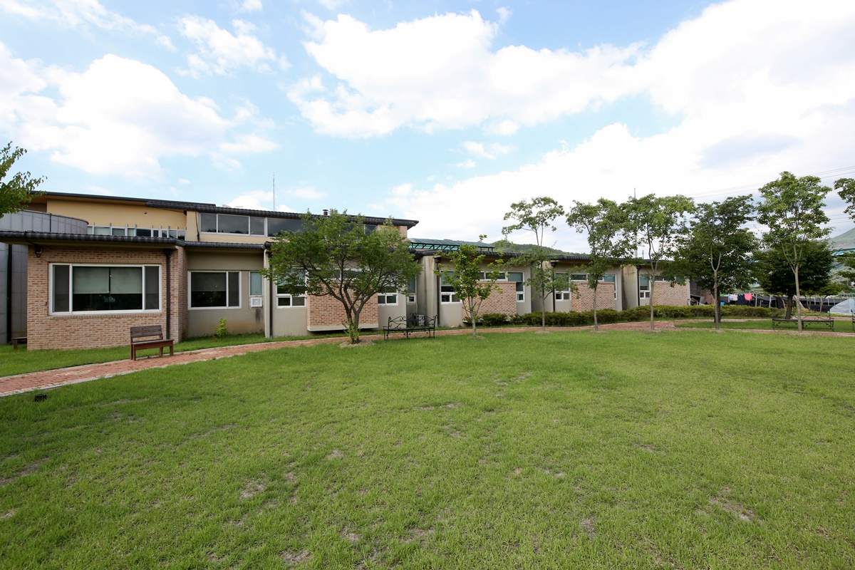 증축된 2관은 4층 건물이지만 초기 시설인 1관은 2층 구조다. 외부에서 보면 각자 독립된 방이 연결된 것처럼 보인다. 건축가는 여기서 한 지붕 10가족이 하나의 마을처럼 옹기종기 모여 사는 분위기를 표현하고자 했다. 또한 거동이 불편한 어르신들의 안전한 활동을 위해 건물의 모서리를 없애고 원형구조의 공간을 구성했다. 흔히 볼 수 있는 긴 복도가 아닌 거실과 마당이 연속되는 내부공간을 통해 어르신들이 살던 마을과 같은 공간감을 느낄 수 있도록 배려한것이다.